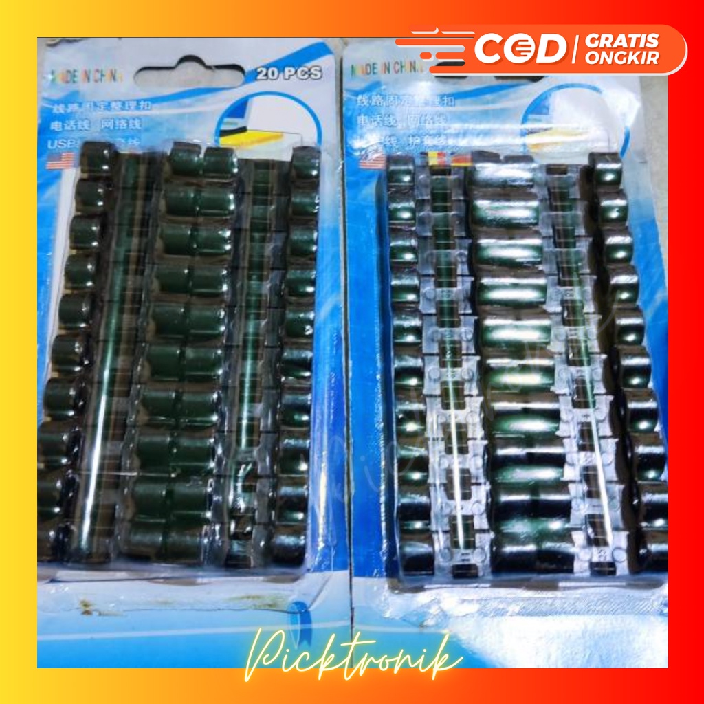 Klip Klem Kabel Tempel 1 Pack Isi 20 Pcs / Klip Perapih Kabel Tanpa Paku / Organizer Pengikat Penjepit Kabel Tempel / Cable Clip Wire Hose Clamp