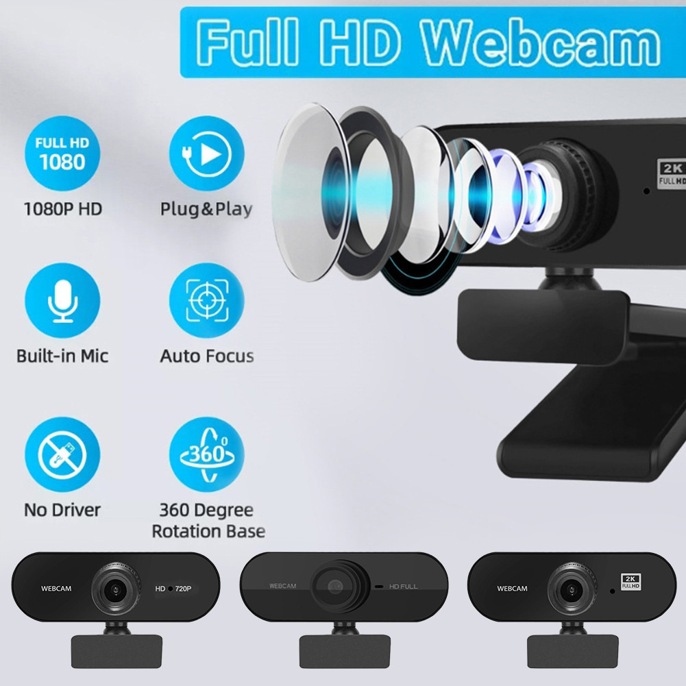 Klip Komputer Aktif dengan Mic Plug and Play Adjustable Angle Live Streaming Online Mengajar Webcam PC