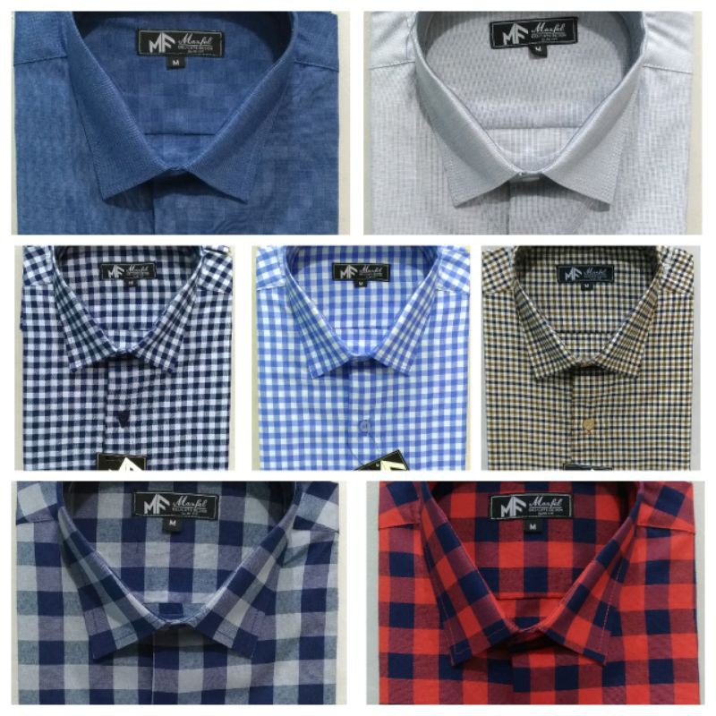 Kemeja Pria Slim Fit MF Maxfel LENGAN PENDEK Kotak Retro Semi Flanel Putih Biru Navy Hitam