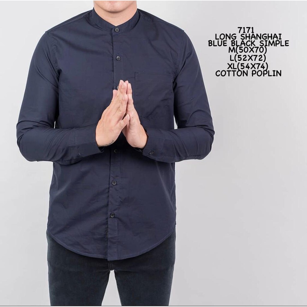 Kemeja pria lengan panjang kerah shanghai baju cowok slimfit navy