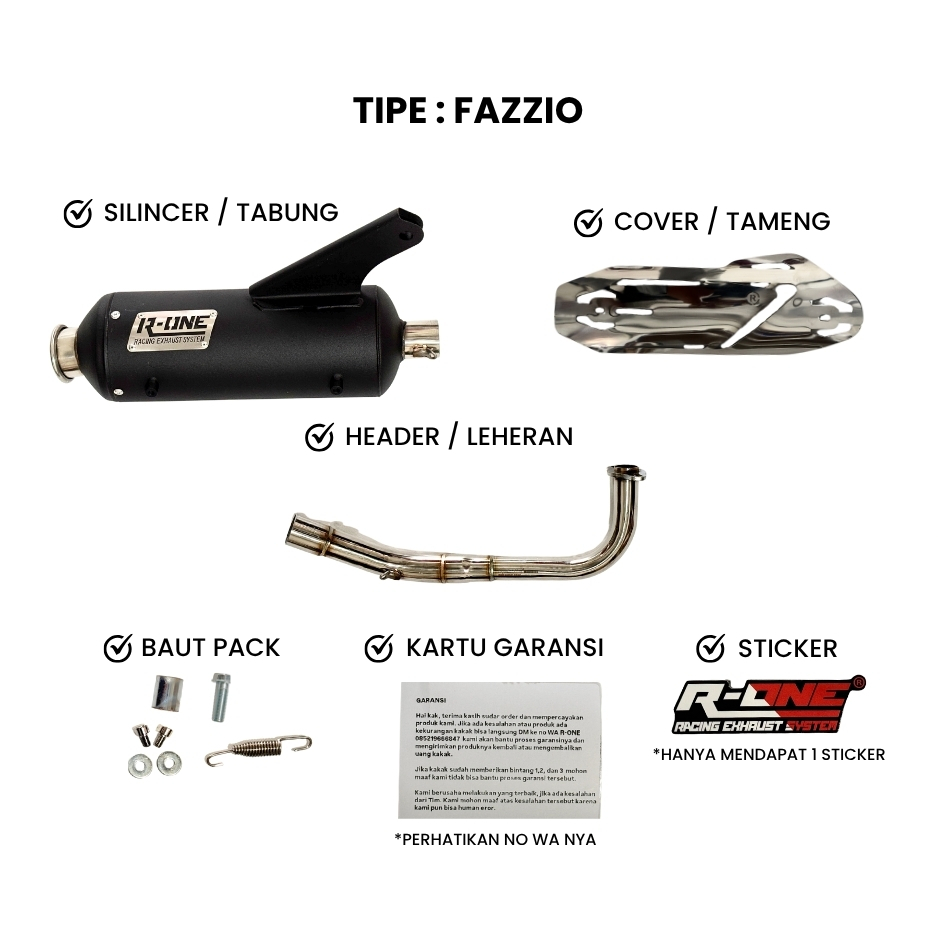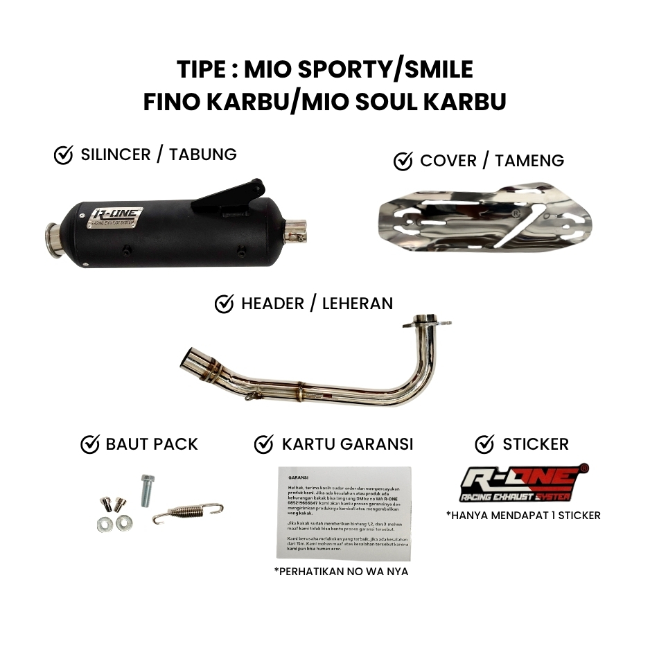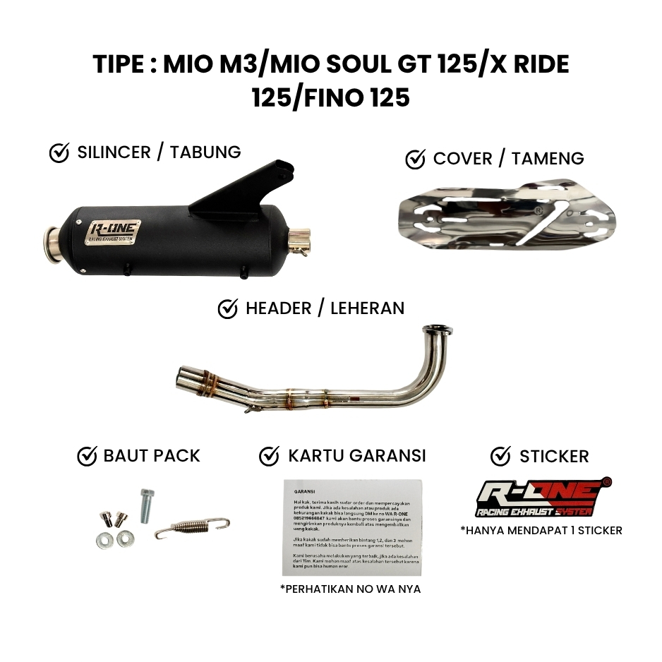 Knalpot R One Racing Muffler V2 STD Full Package untuk Yamaha