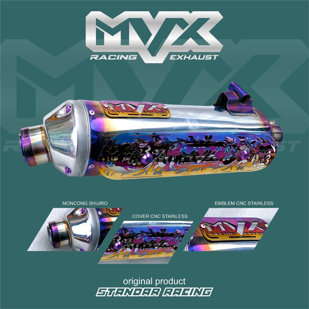 Knalpot Standar Racing MVX Blue Shijiro Cover CNC Stainless Vario Nmax Aerox Pcx Beat Scoopy Dll