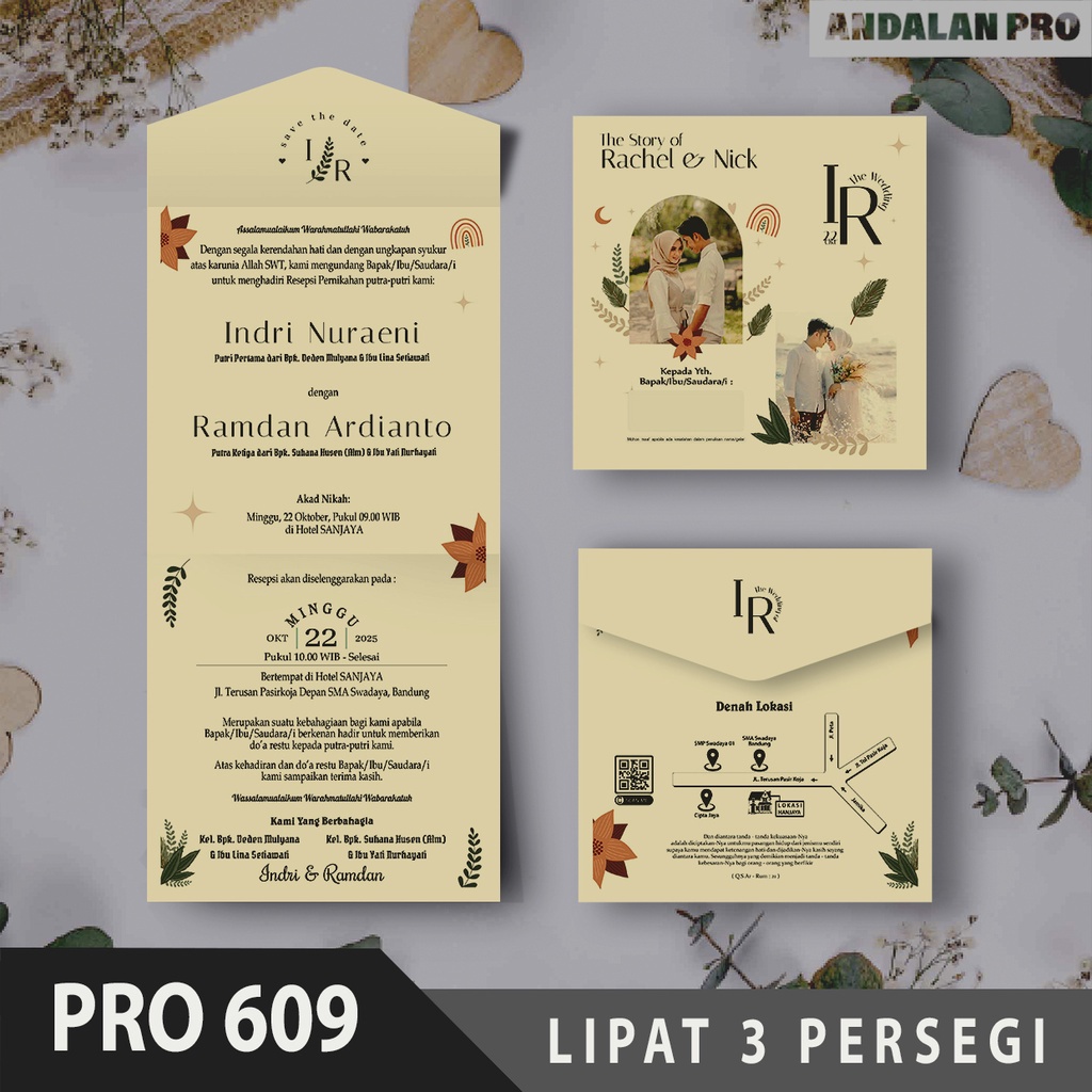 Kode Toko: S12 - PRO 609 LIPAT 3 Persegi Bahan Jasmine / Tik 200 GSM - Cetak Undangan Termurah, Undangan Softcover Pernikahan, Khitanan, Ngunduh Mantu, Walimatul Ursy, Tasyakuran, Syukuran, Elegan, Mewah, Estetik, Simpel By Andalan Pro