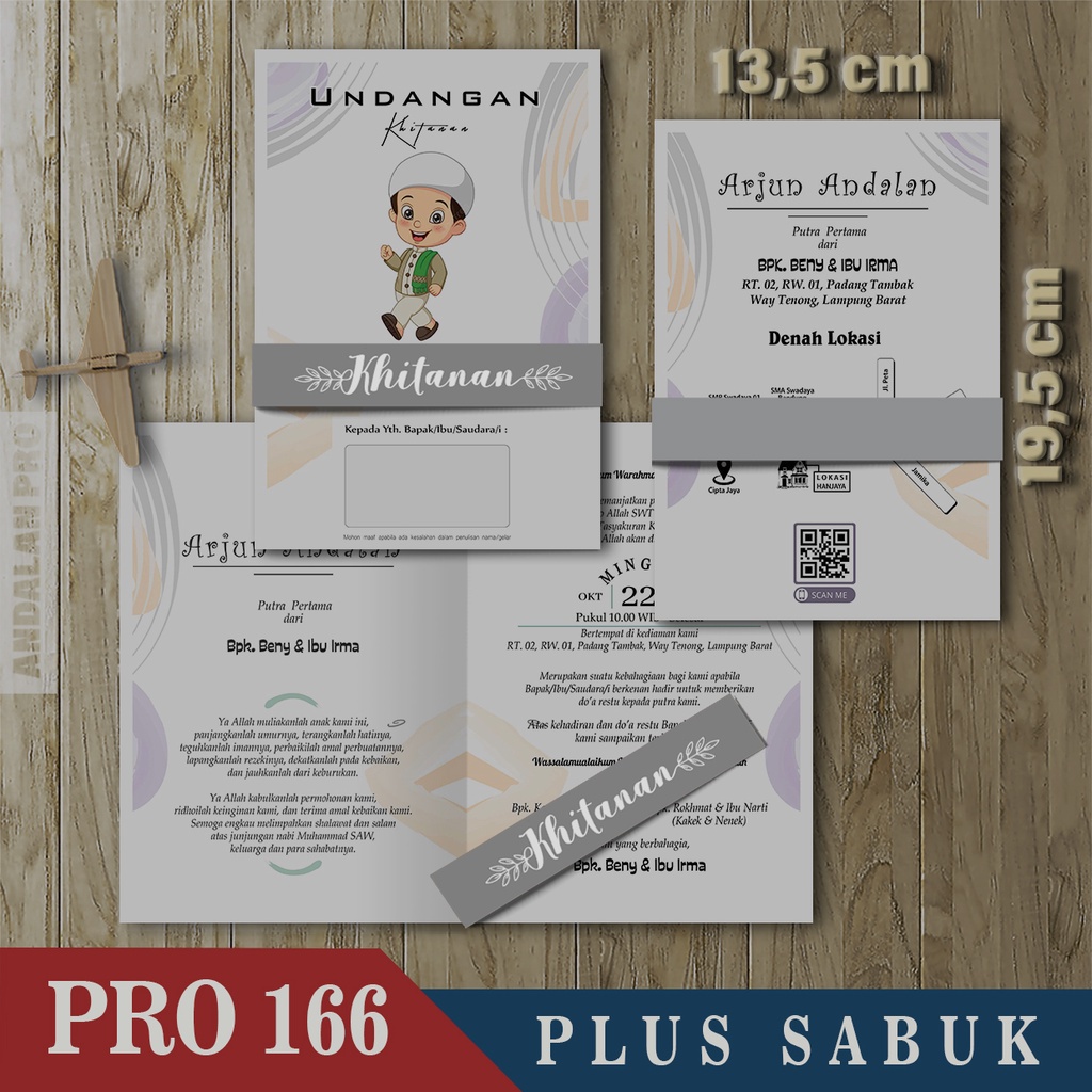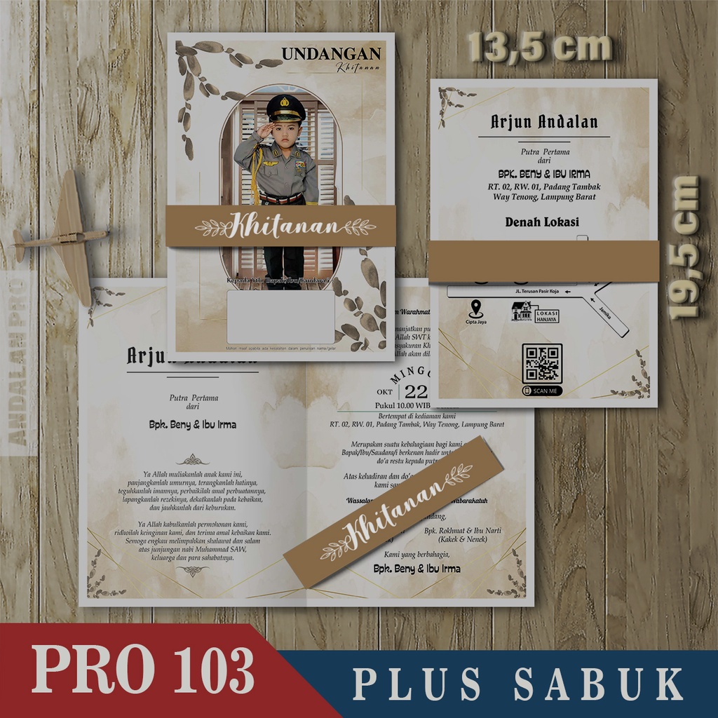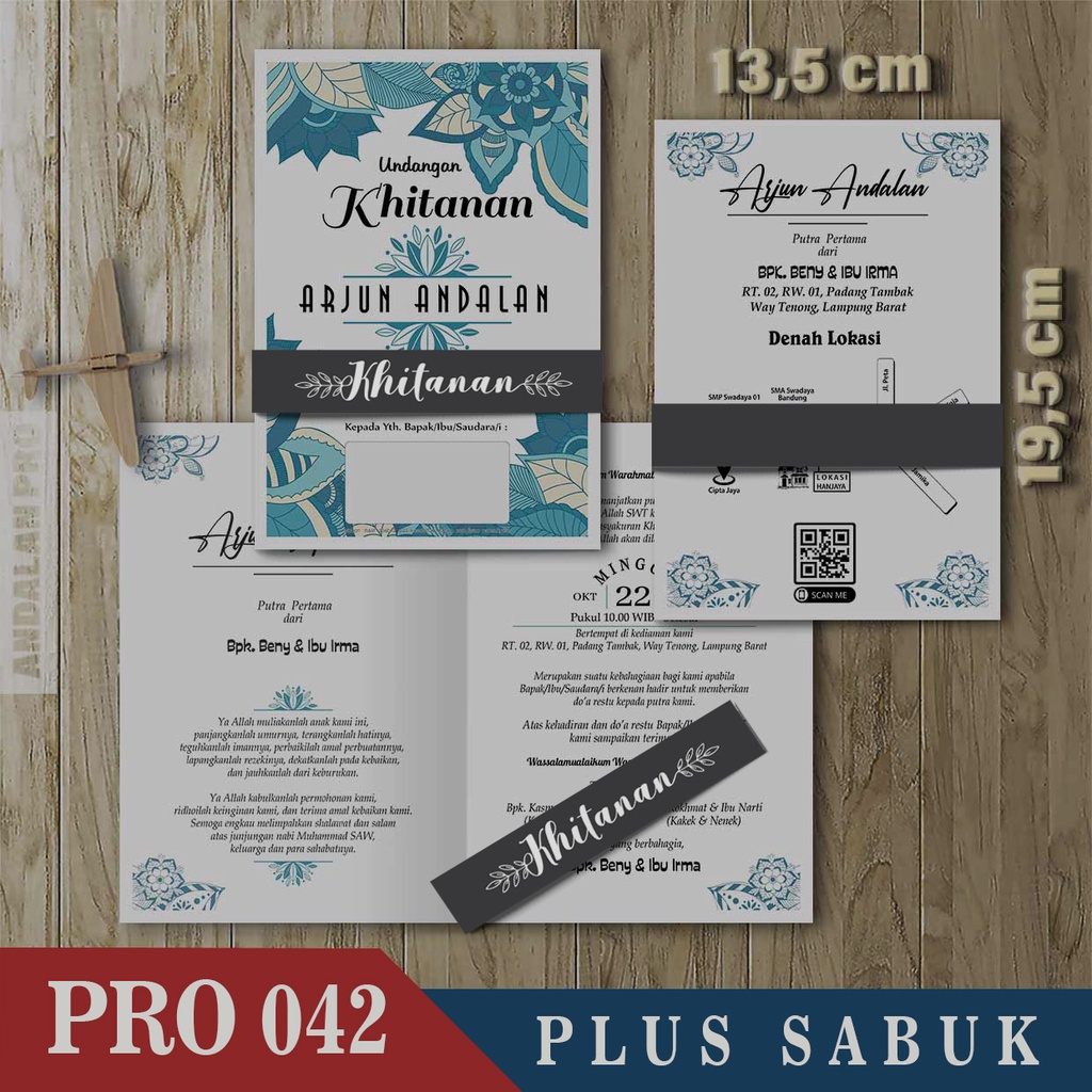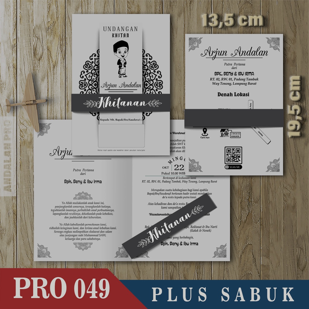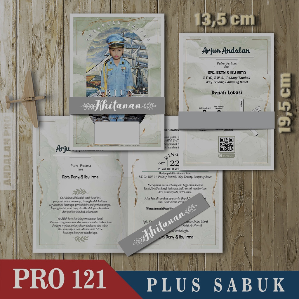 Kode Toko: S3 - 43 Desain Undangan Khitan Bahan BC 150 GSM Plus Sabuk By Andalan Pro