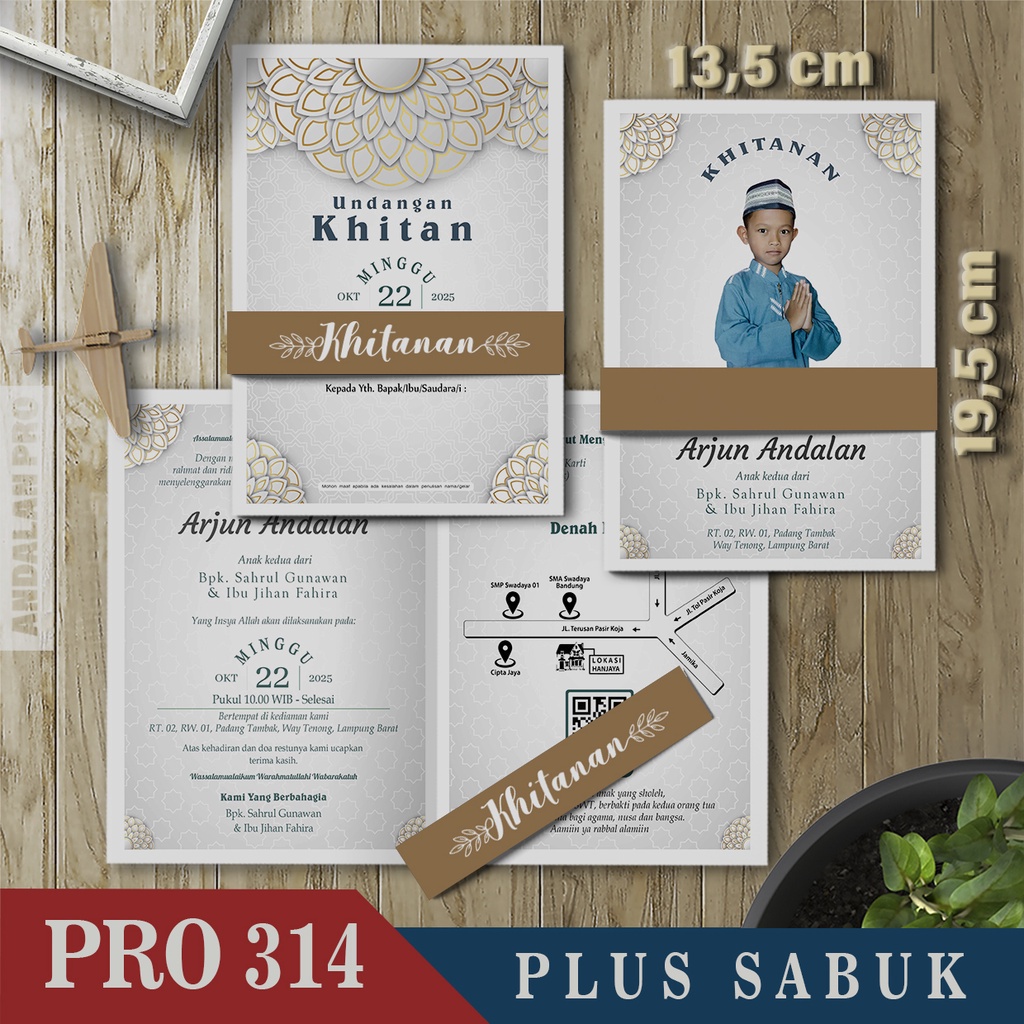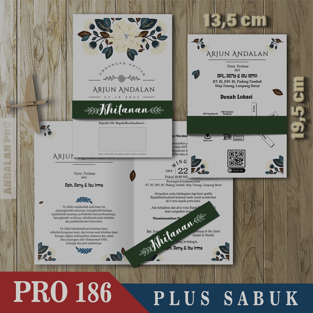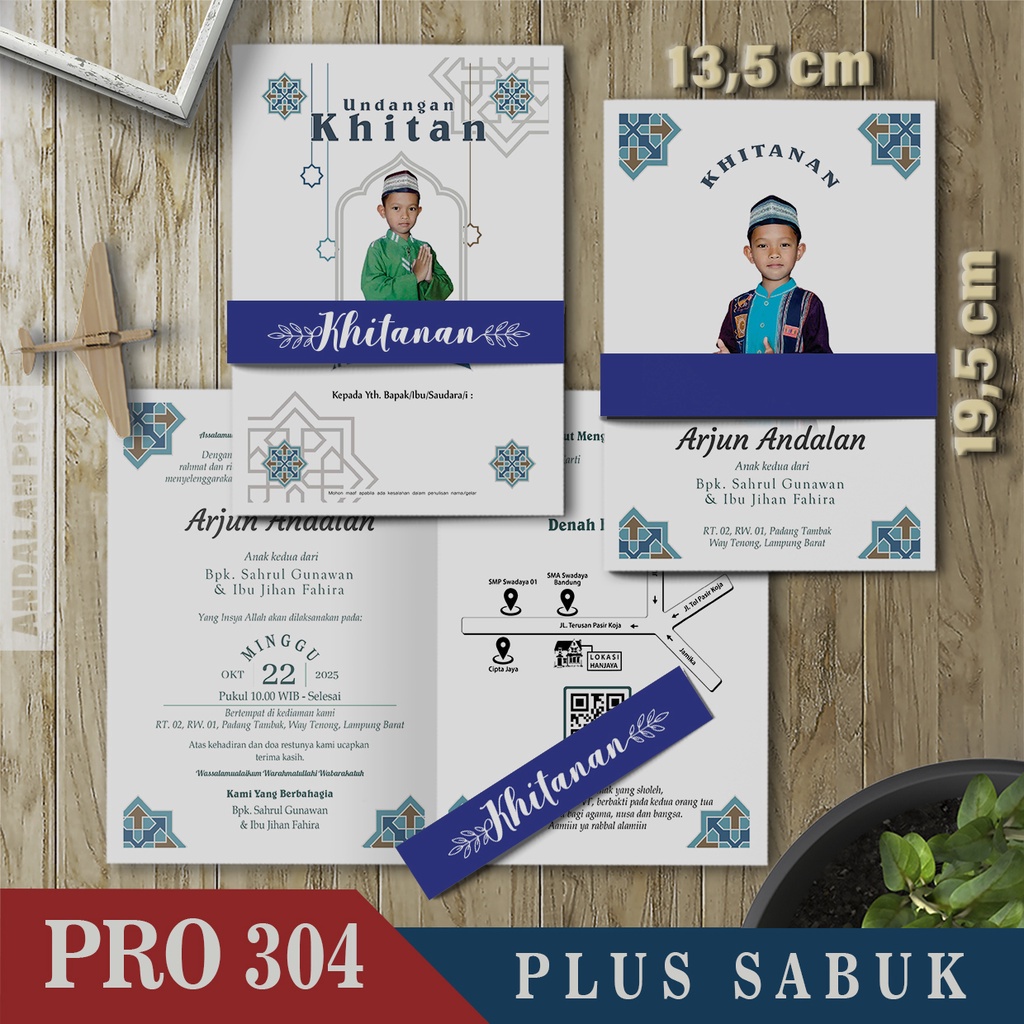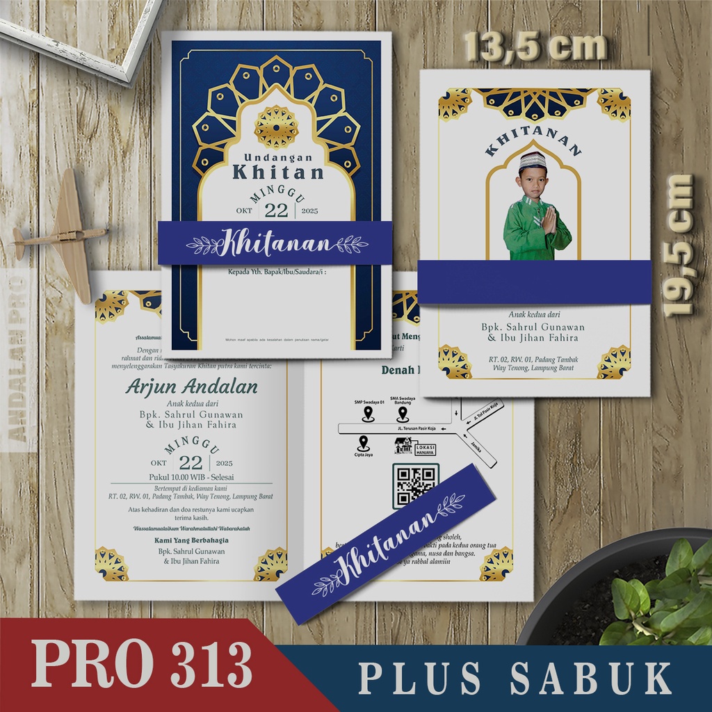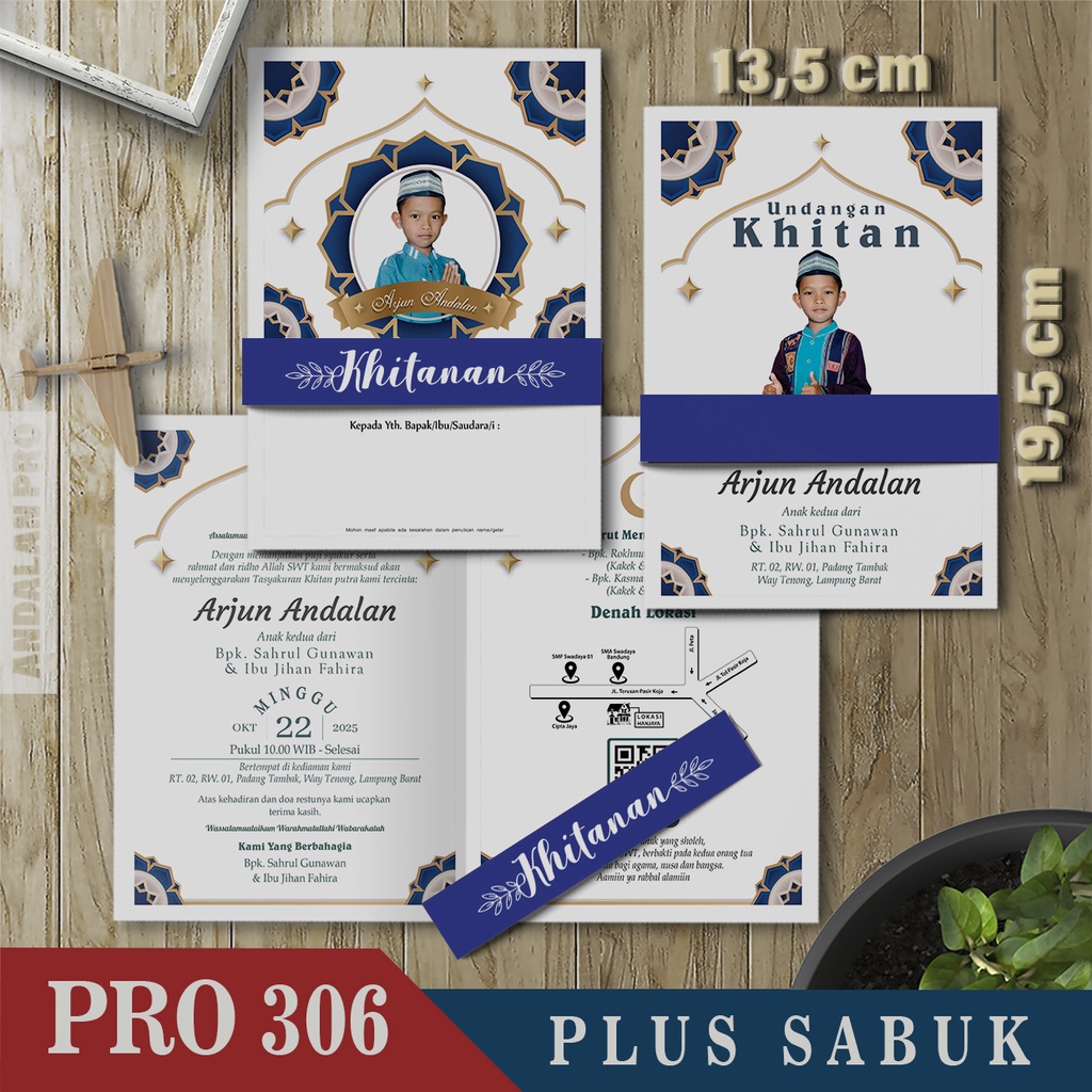 Kode Toko: S3 - 43 Desain Undangan Khitan Bahan BC 150 GSM Plus Sabuk By Andalan Pro