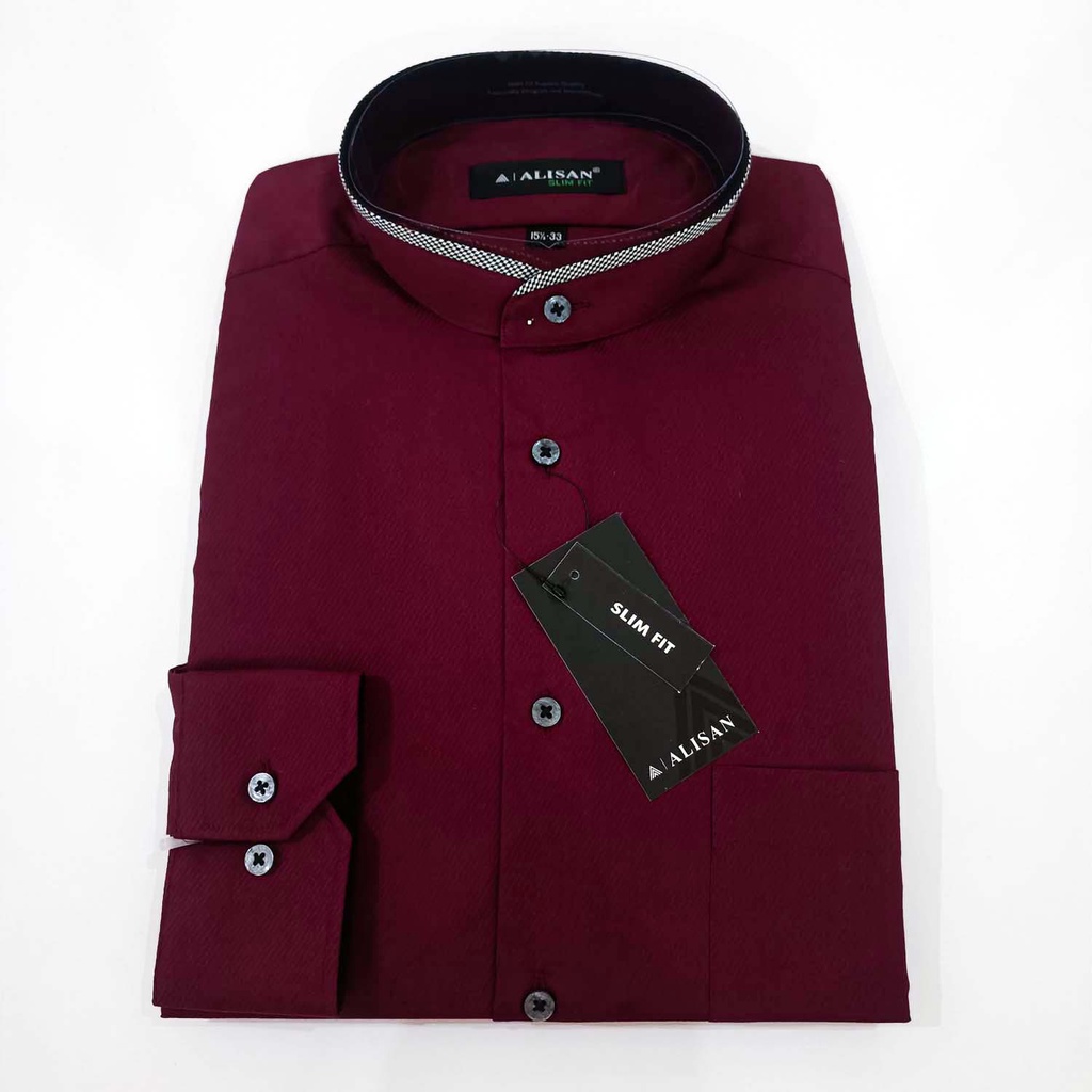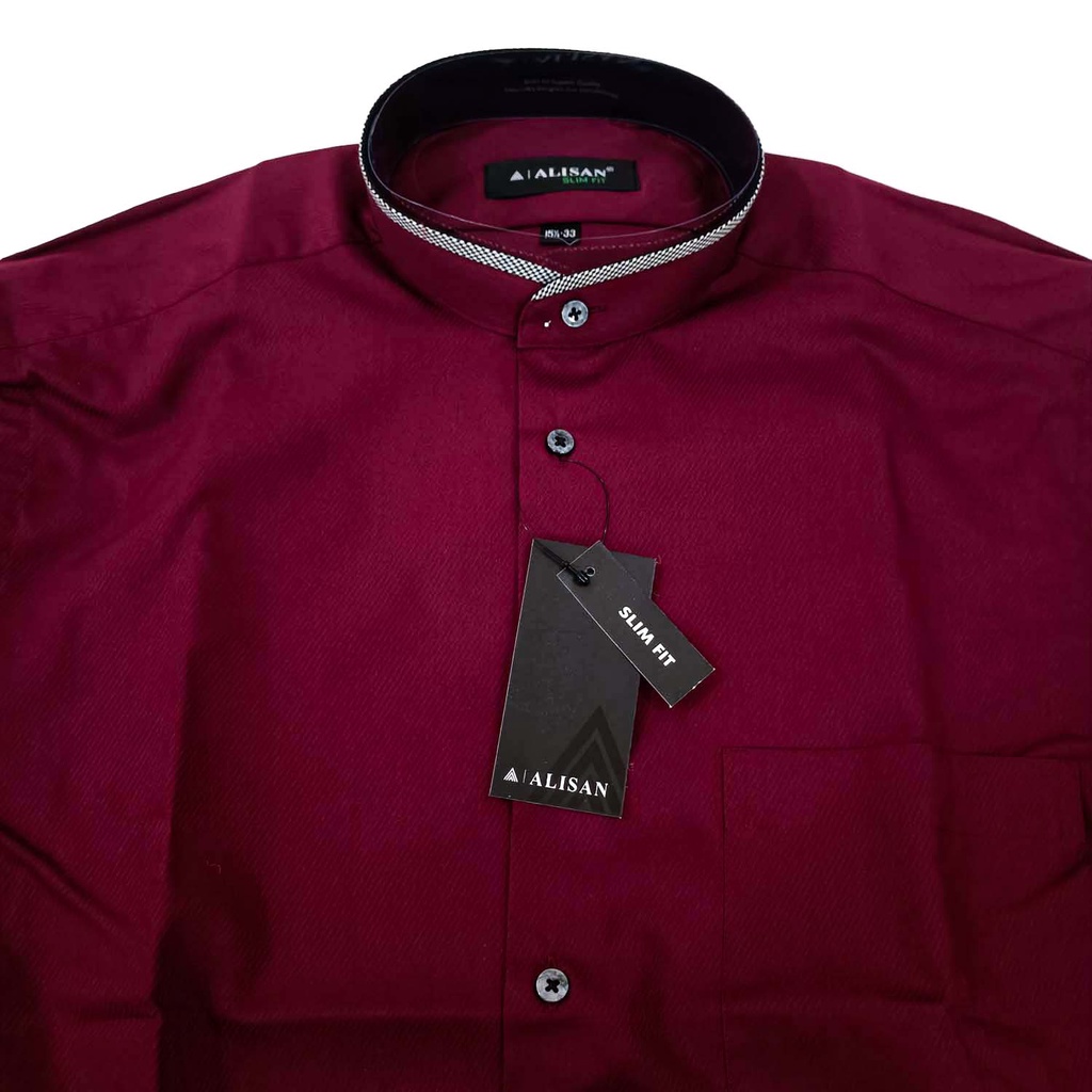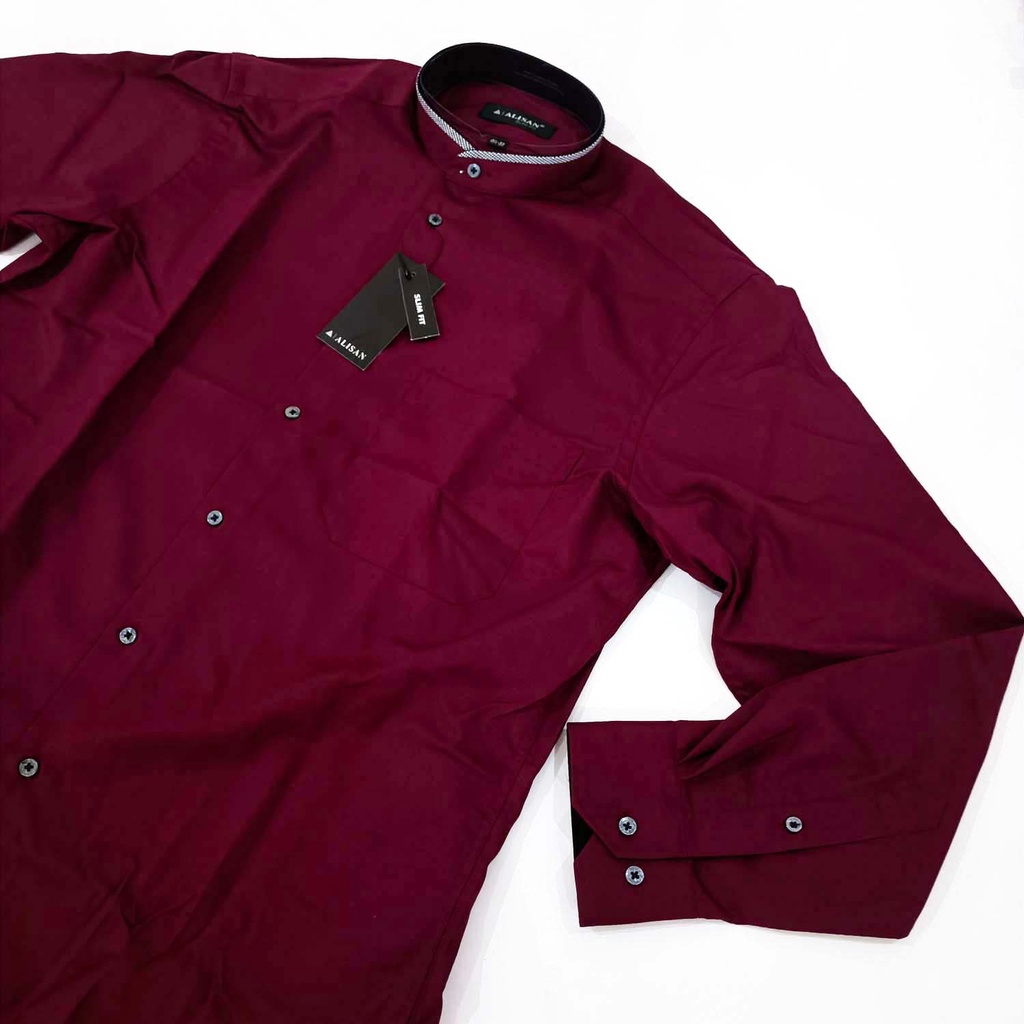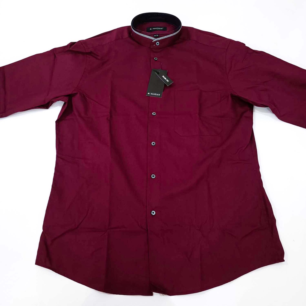 Koko ALISAN Doby SLIM FIT Lengan Panjang Kerah List ( MERAH MAROON , HITAM )