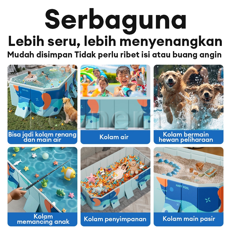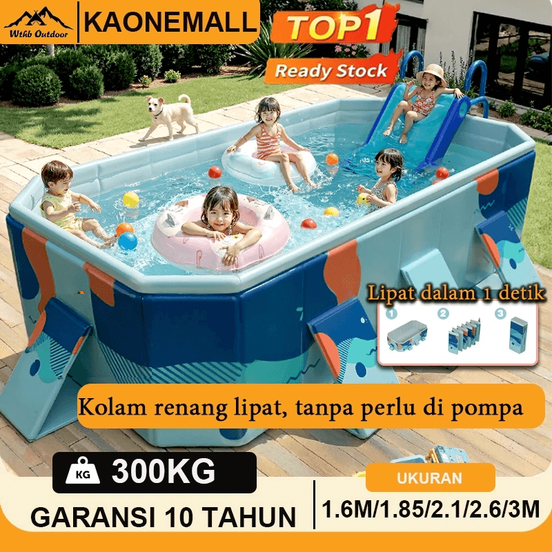 Kolam Lipat Jumbo Kolam Renang Anak Keluarga Jumbo Berkualitas Kolam Lipat Kotak Tanpa Pompa Untuk 1-10 Orang Swimming Pool