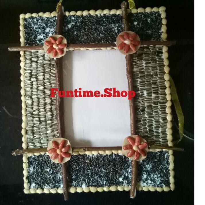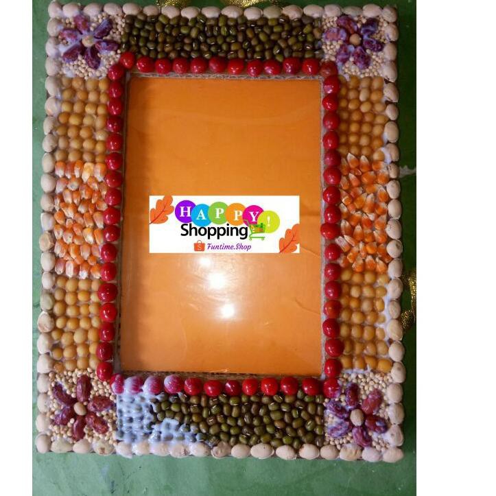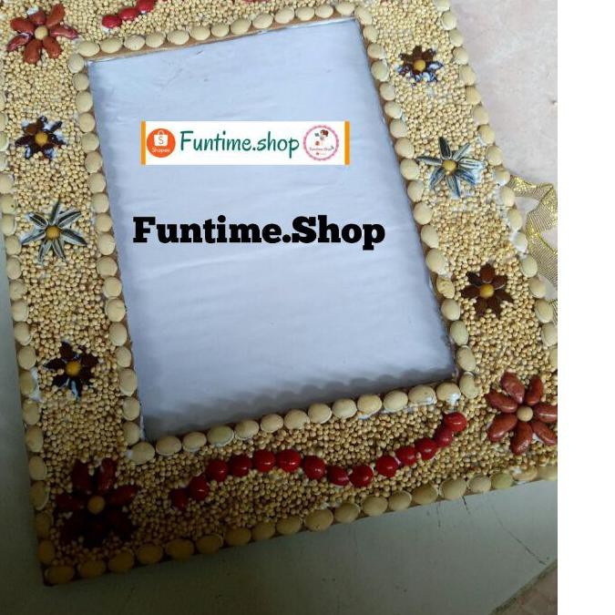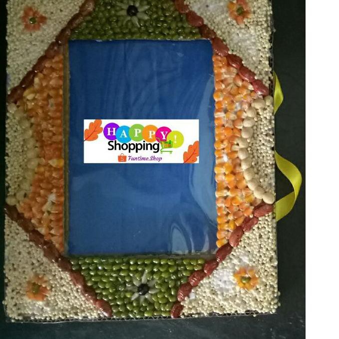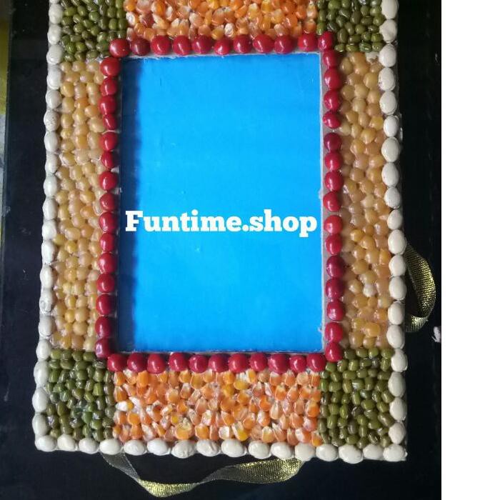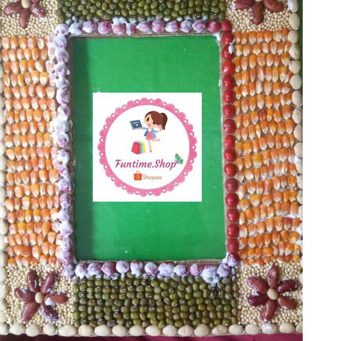 Kolase biji bingkai foto dari kardus bekas 4R Dengan Mika