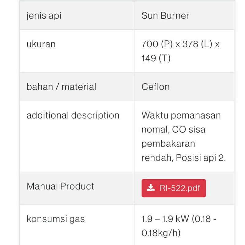 Kompor Gas Rinnai 2 Tungku RI 522s Kompor Rinnai Ceflon Kompor Rinnai 522s RI 522 S