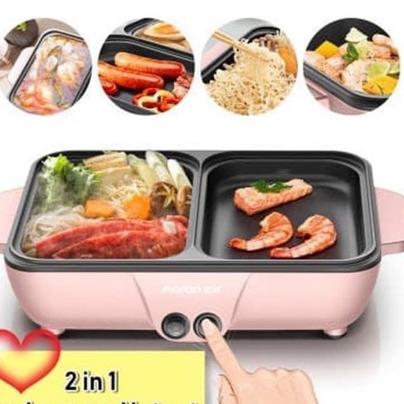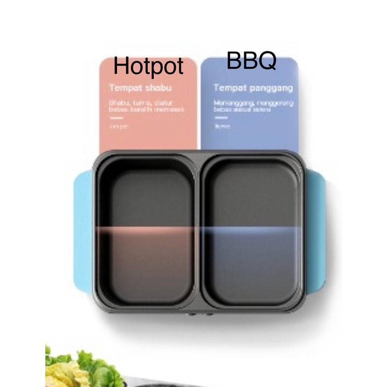 Kompor Listrik 2in1 Elektrik Portable Alat Hotpot Mini Steamboat Panggangan Grill Pan