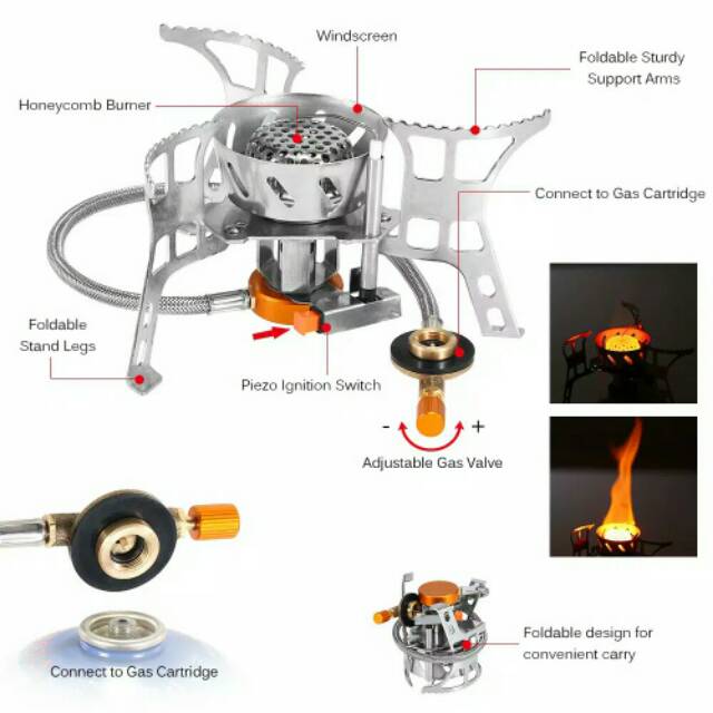 Kompor gas portable lipat mini camping ultralight outdoor stove gunung free adaptor adapter