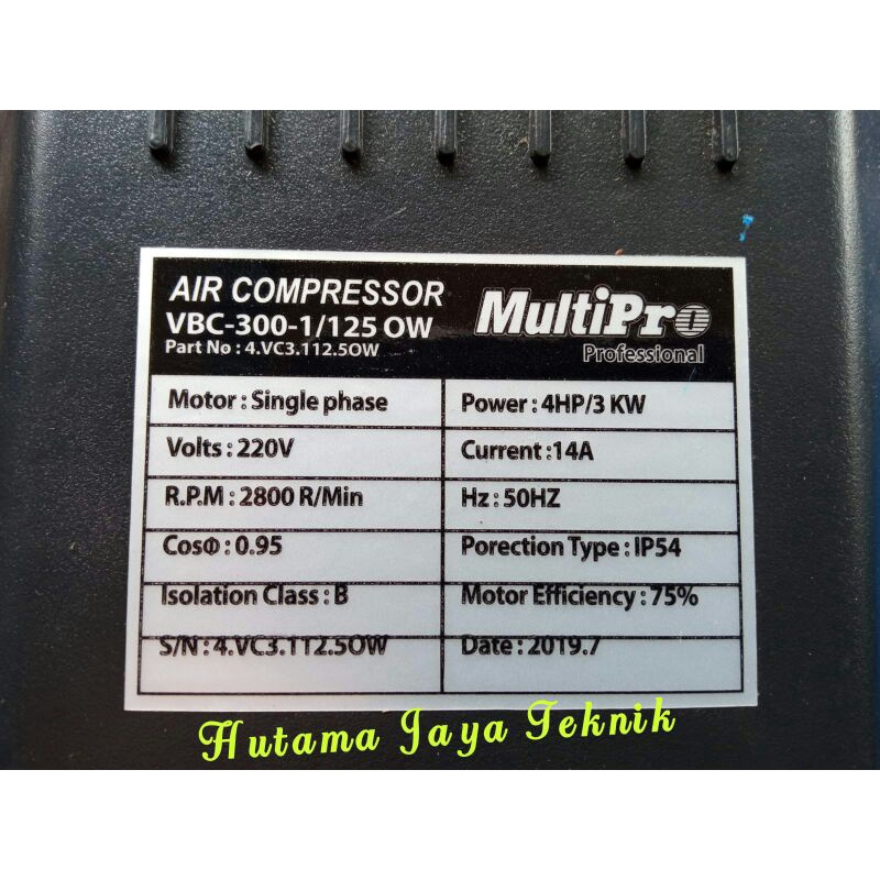 Kompresor Angin Multipro 4 HP 1 Phase Pas Fas VBC-300-1/125 OW 4 HP 1 Phase 125 Liter