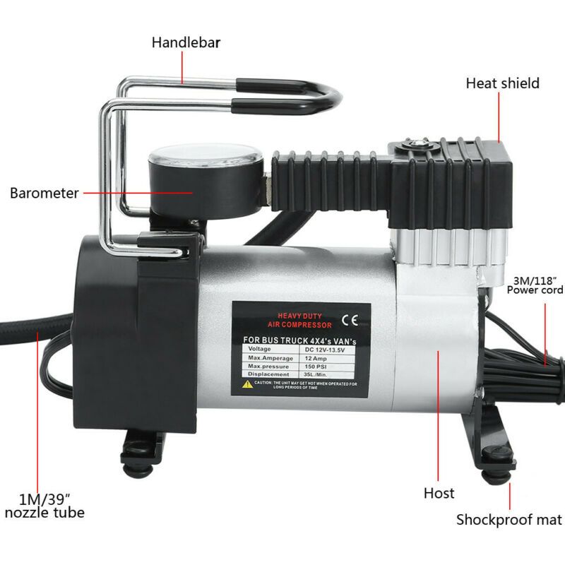 Kompresor Mini cet heavy duty150 psi dan Adaptor 12v 5A - Pompa Ban Air Compressor DC 12V Kabel 2.5