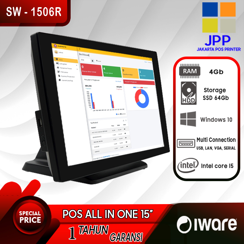 Komputer All in One PC Prosesor Core i5 RAM 4Gb 64GB SSD Layanan Retail, Kasir, Restoran Garansi1Tahun
