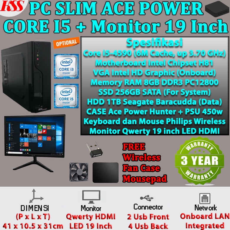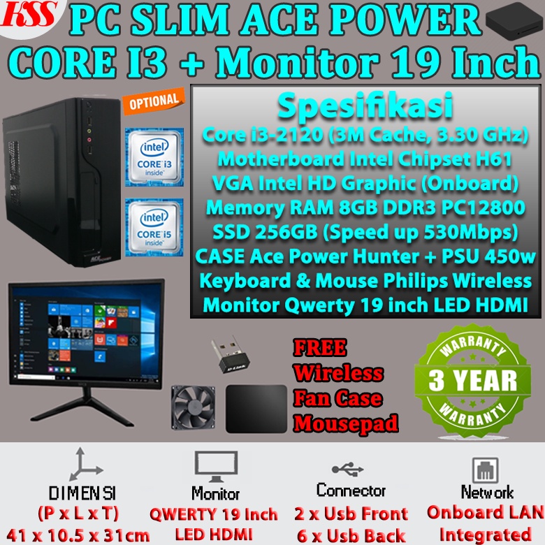 Komputer Slim / MINI PC Core i3 RAM 8GB SSD 256GB Monitor 19 Inch Lengkap Bergaransi