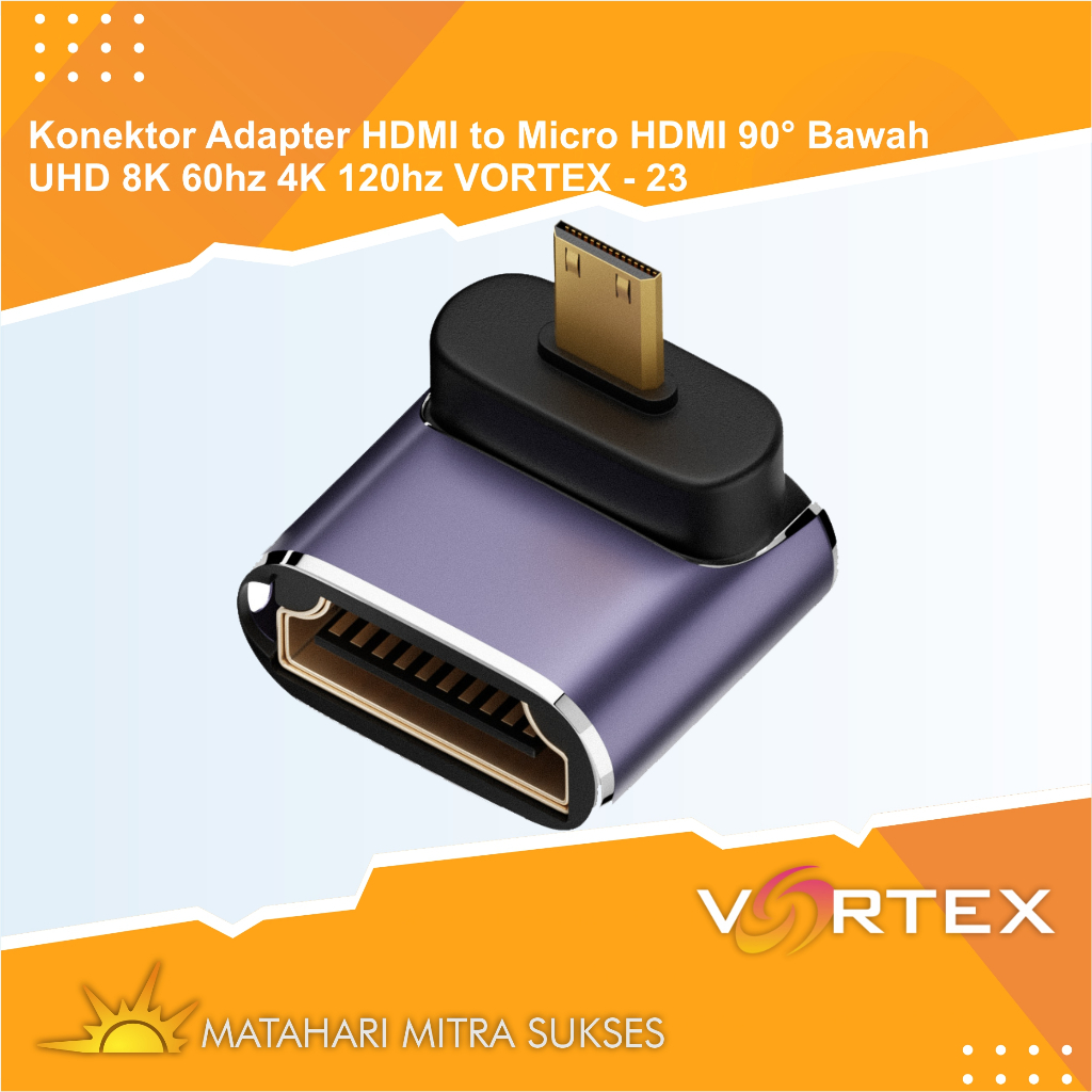 Konektor Adapter HDMI to Micro HDMI 90° Bawah UHD 8K 60hz 4K 120hz VORTEX