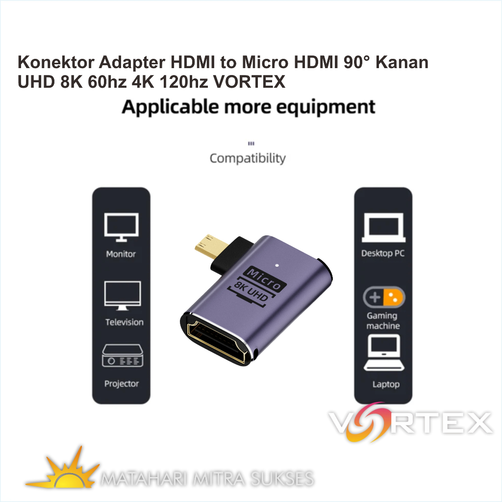 Konektor Adapter HDMI to Micro HDMI 90° Kanan UHD 8K 60hz 4K 120hz VORTEX