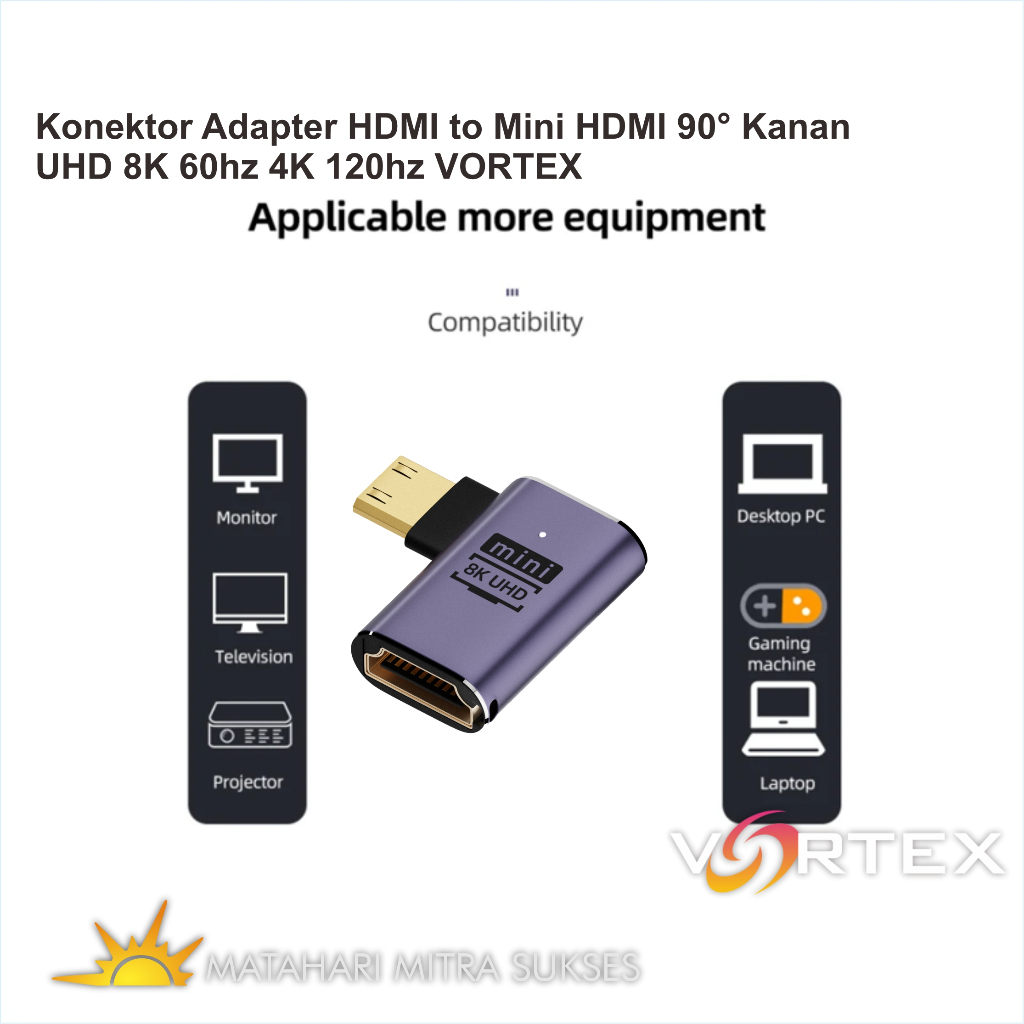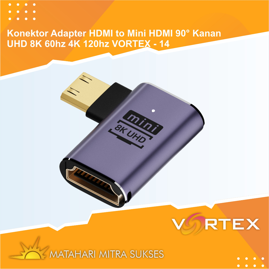 Konektor Adapter HDMI to Mini HDMI 90° Kanan UHD 8K 60hz 4K 120hz VORTEX