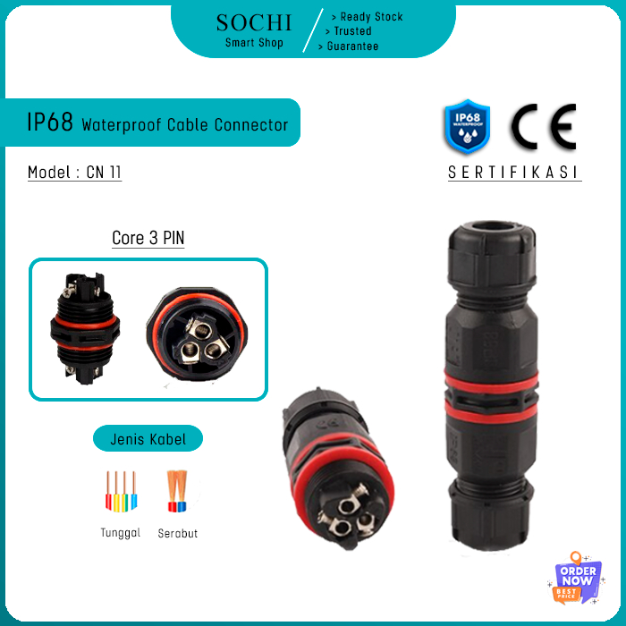 Konektor Kabel IP68 Waterproof Sambungan Kabel Listrik Socket 2.5mm