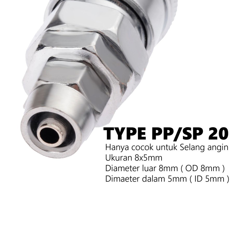 Konektor Quick Coupler angin Type SP20 - PP20 Stainless - Sepasang