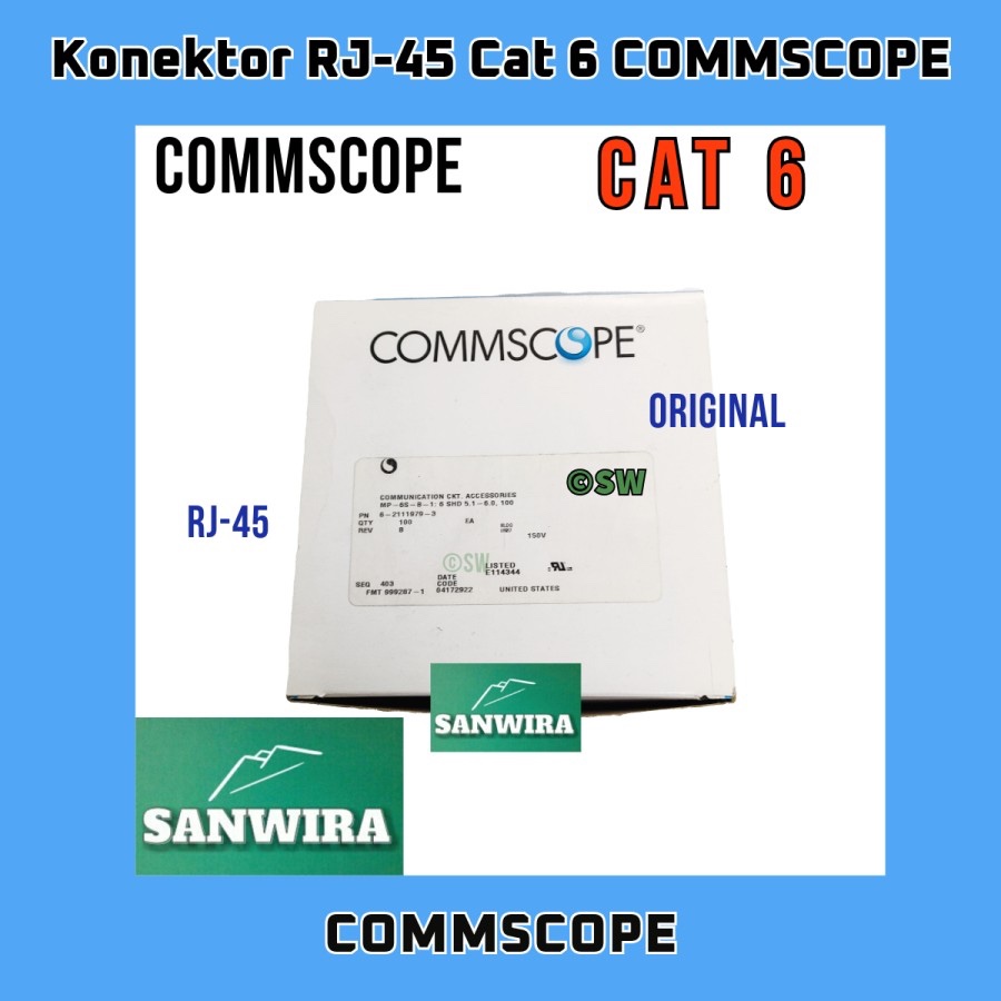 Konektor RJ45 Cat 6 Commscope / RJ-45 Connector Cat6 COMMSCOPE / Konektor RJ 45 Category 6 Commscope / COMMSCOPE RJ45 Cat.6 eceran satuan ketengan / Konektor Comscope RJ-45 original / Cat 6 RJ45 Commscope