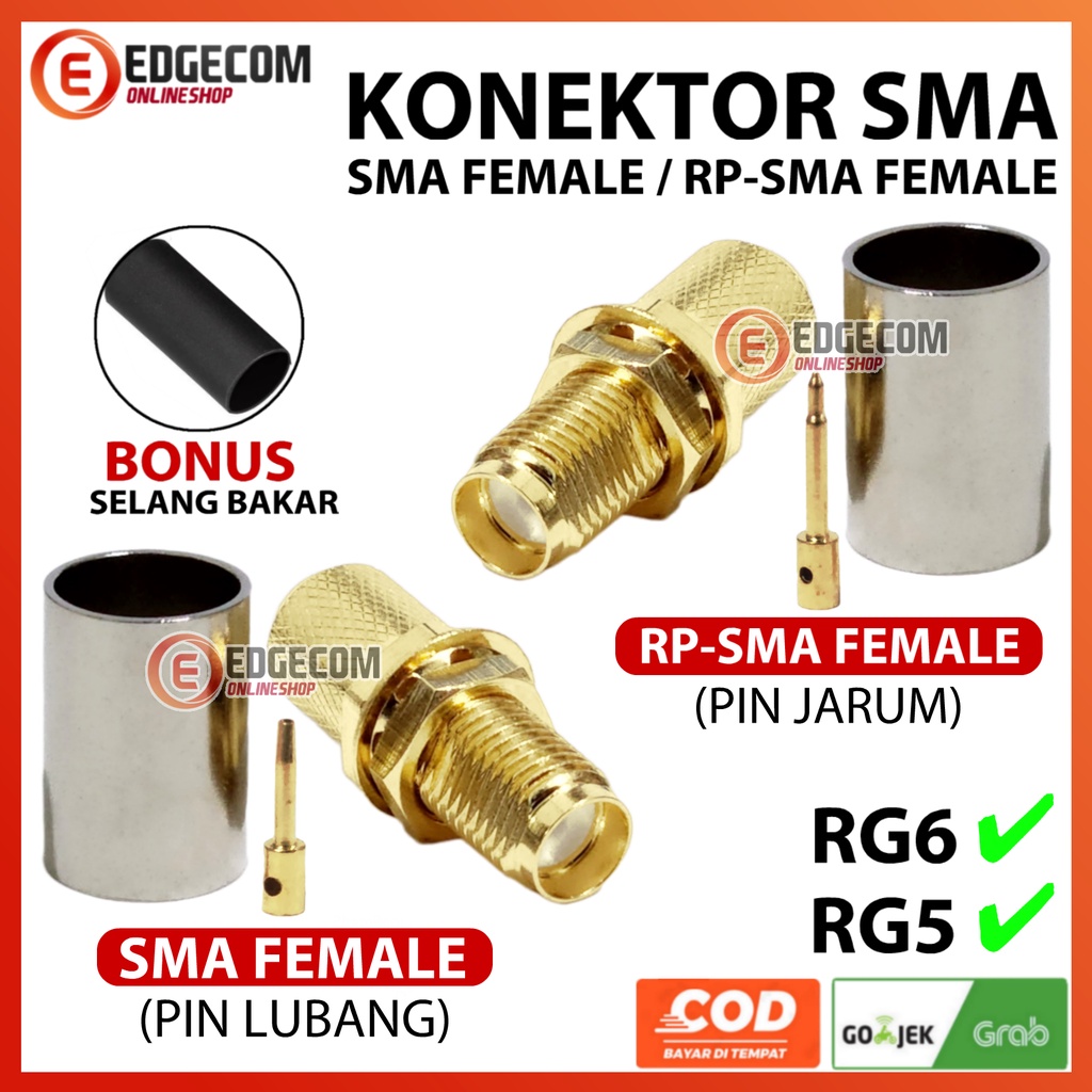 Konektor SMA Female / RP SMA Female Crimp untuk RG5 & RG6