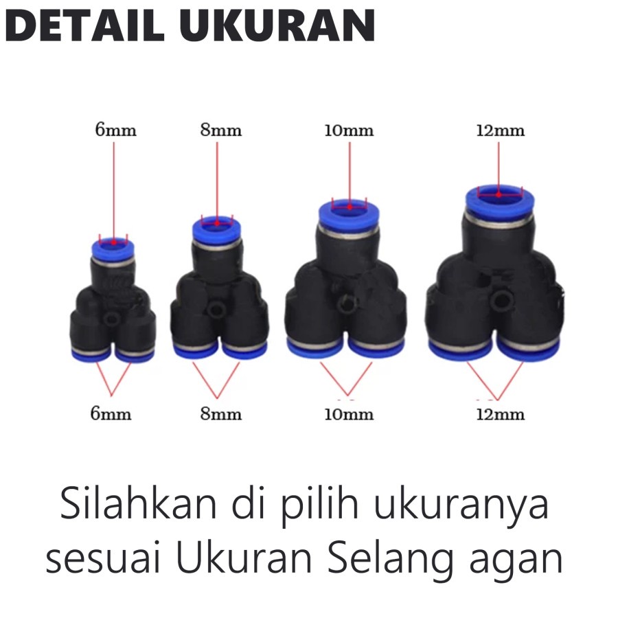 Konektor Slip Lock Y untuk Selang PU, Sambungan Selang Pu 3 Arah Model Y