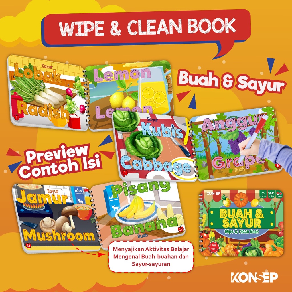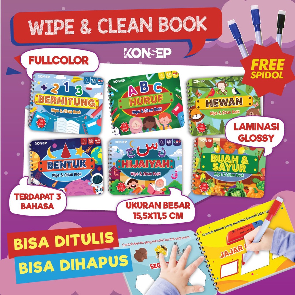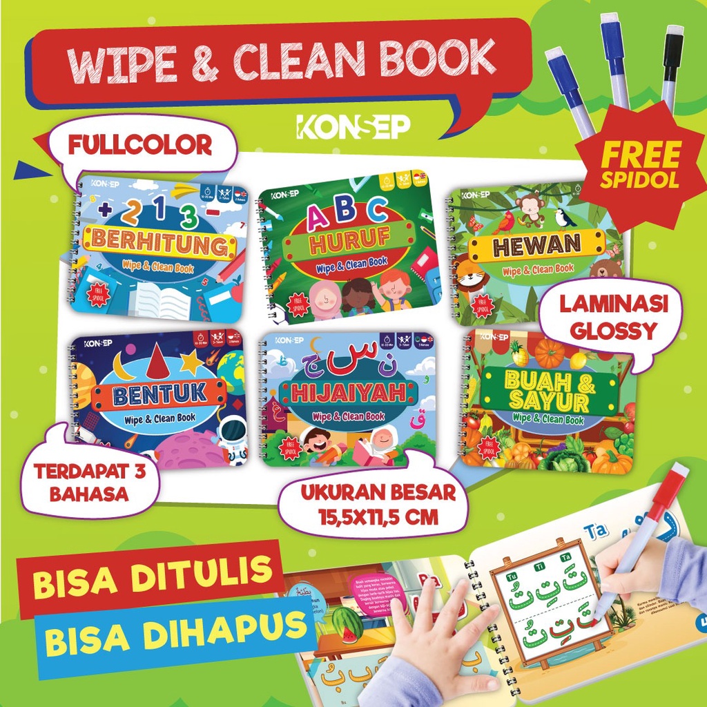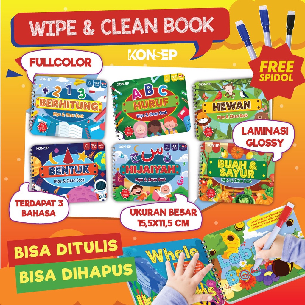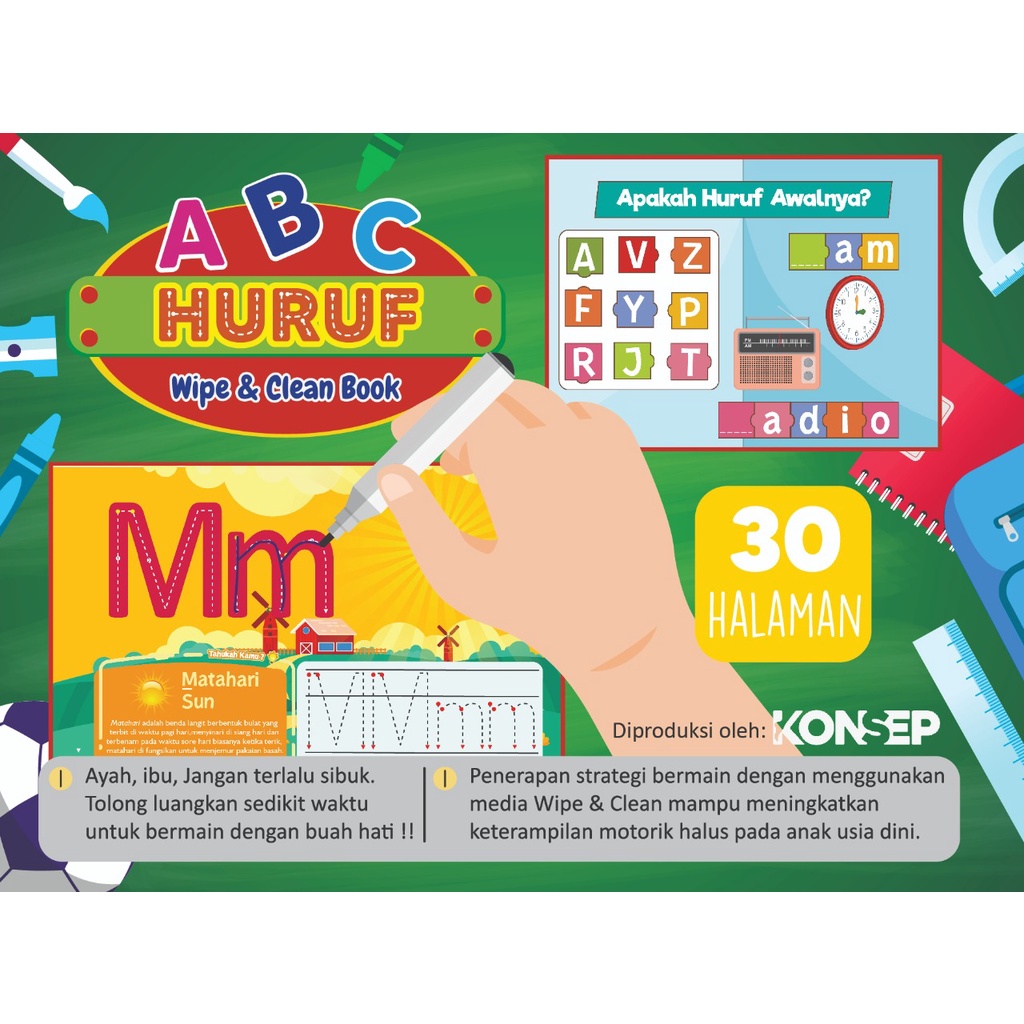 Konsep Wipe Clean Book ABC Huruf Buku Edukasi Anak Belajar Menulis Membaca Anak Paud TK Toodler