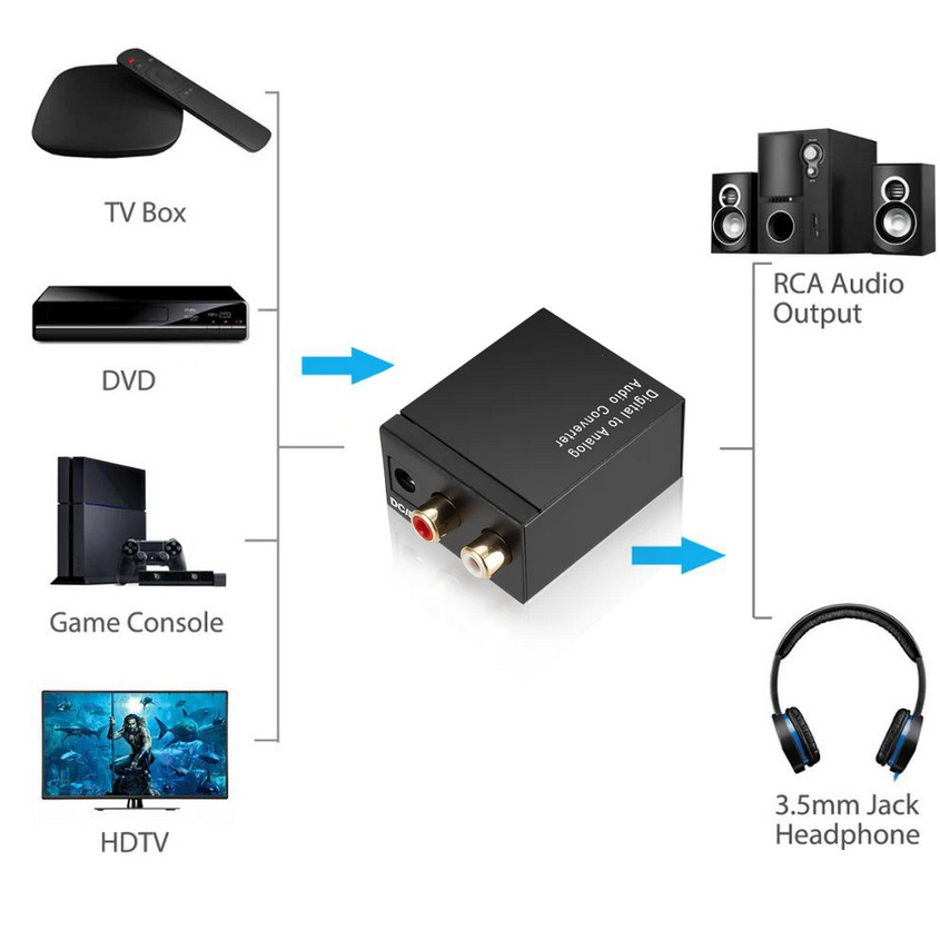 Konverter Audio Digital ke Analog, Audio Converter, Toslink Audio Digital TV ke Speaker
