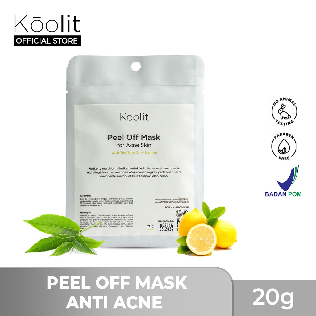 Koolit Peel Off Mask for Acne Skin with Tea Tree Oil & Lemon 20g | Masker Jerawat