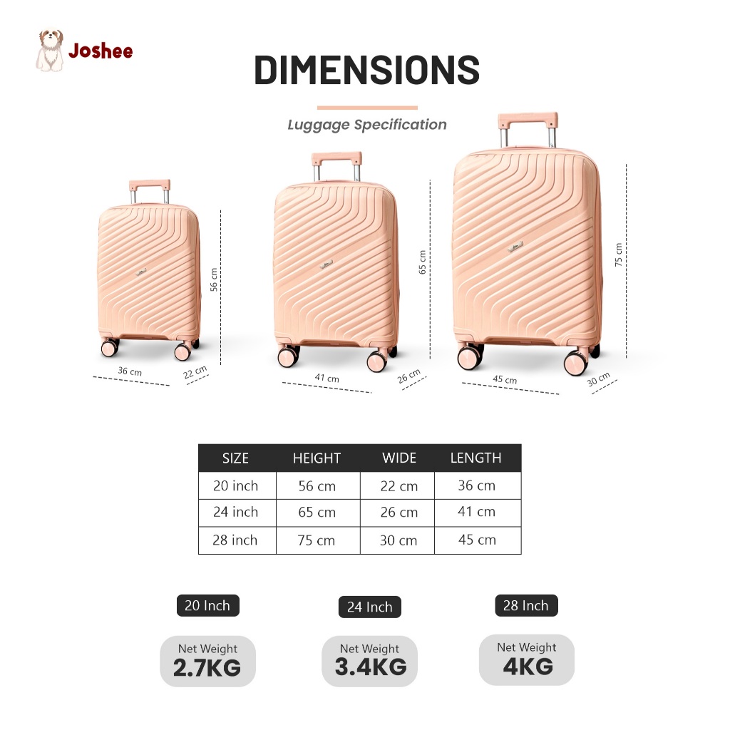INSTANT - Koper Joshee Luxa Series Size 20 24 28 Inch Kabin & Bagasi TSA Expandable Anti Pecah
