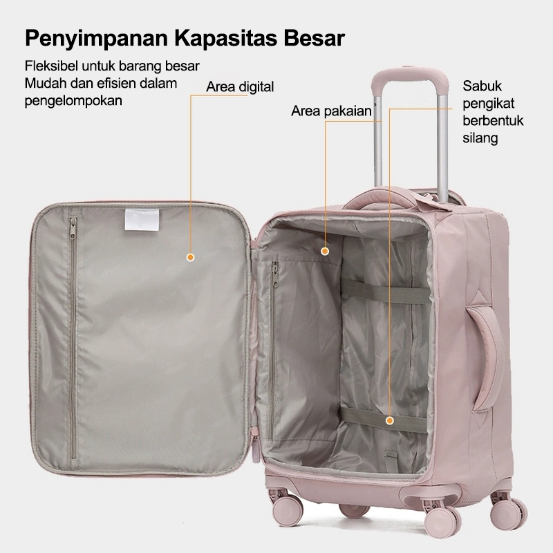 Koper Kain Super Ringan Size Cabin Size Bagasi / Koper Travel Tahan Banting 20 Inch - Tas Trolley Zipper Anti Curi, Cocok untuk Liburan Keluarga