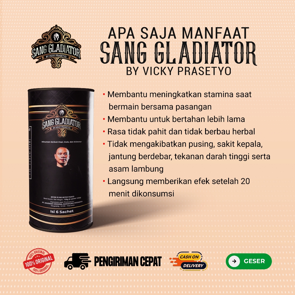 Kopi Gladiator Original - Kopi Kuat Untuk Lelaki - Obat Kuat Pria Tahan Lama Di Ranjang 1 Pack Isi 6 Sachet