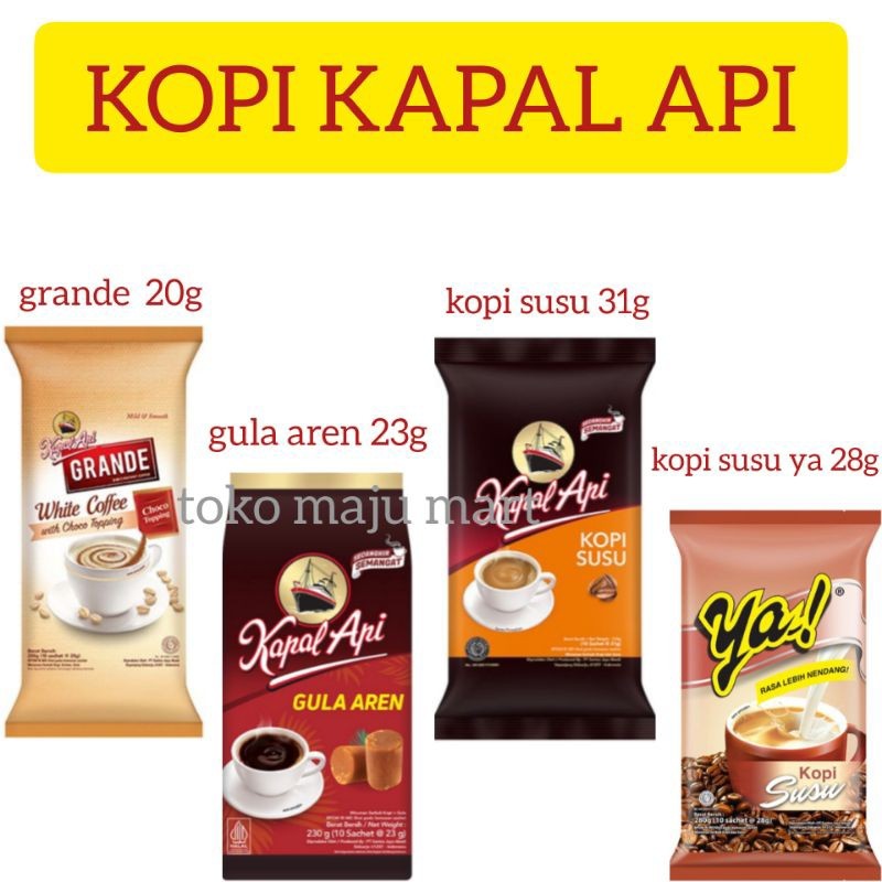 Kopi Kapal Api Grande, Gula Aren, Kopi Susu, Kopi YA! Kopi Bubuk Instan Dari Biji Kopi Pilihan Dan Diolah Dengan Teknologi Modern