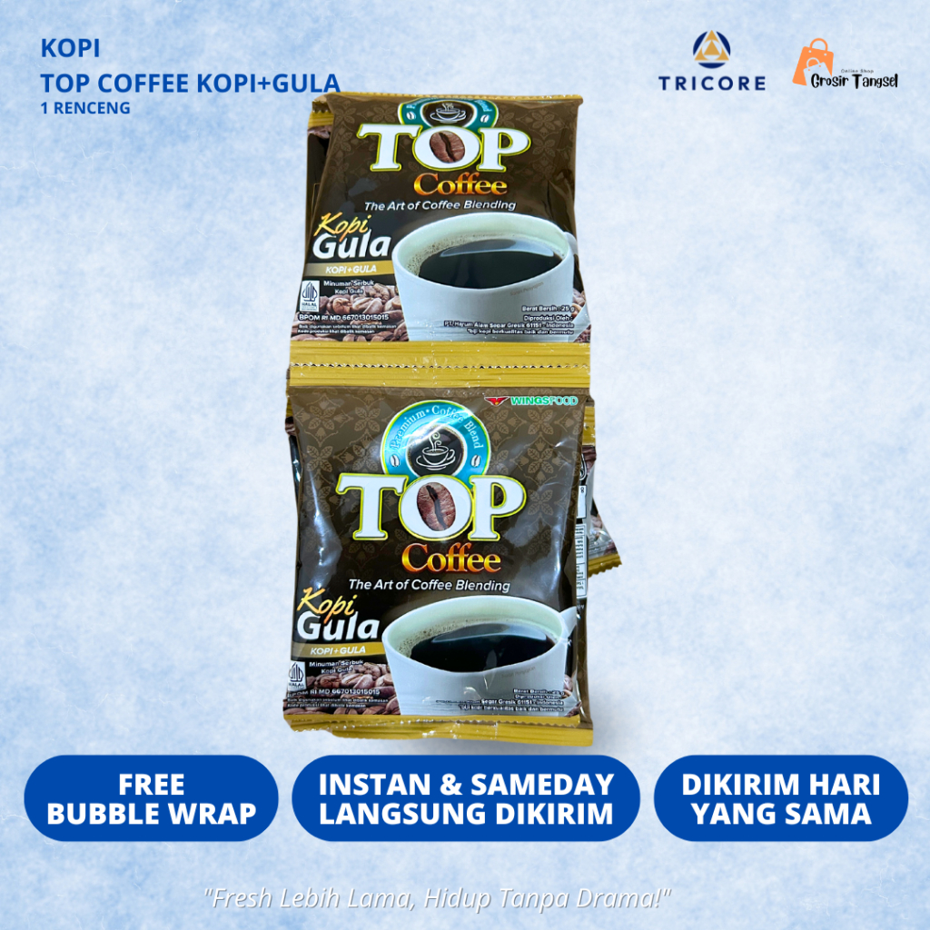 KOPI TOP COFFEE PLUS GULA 1 Renceng isi 10pcs