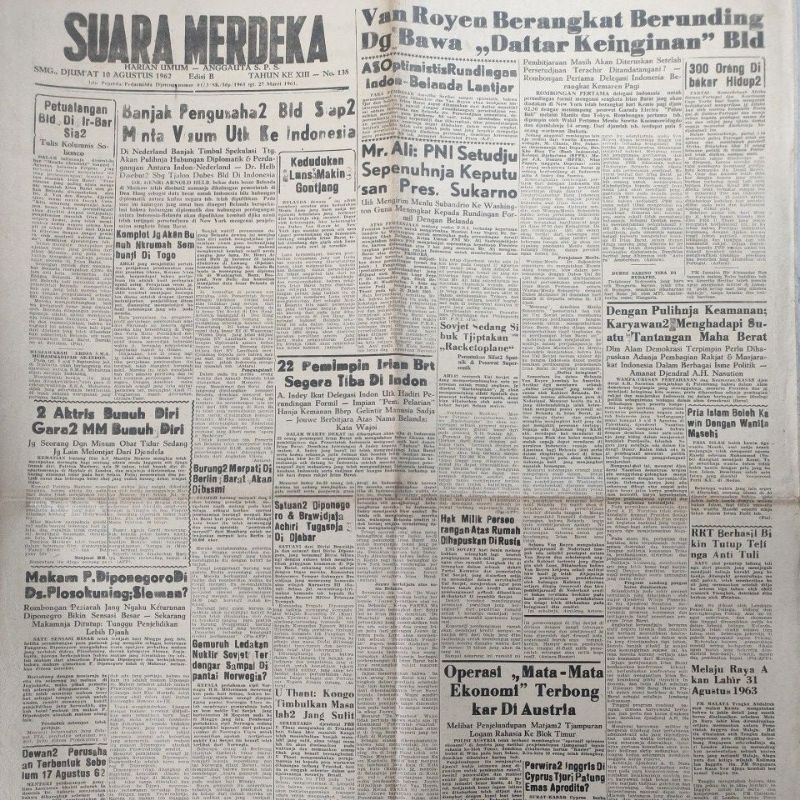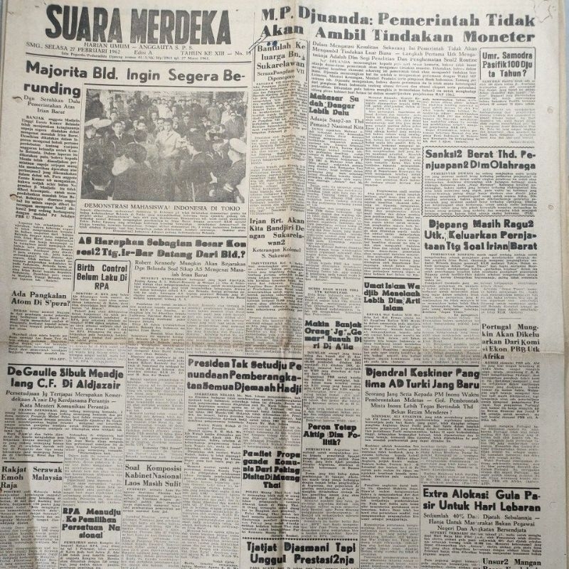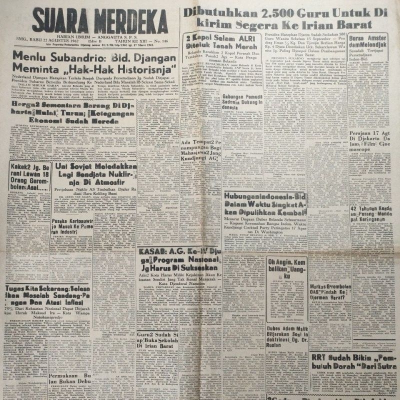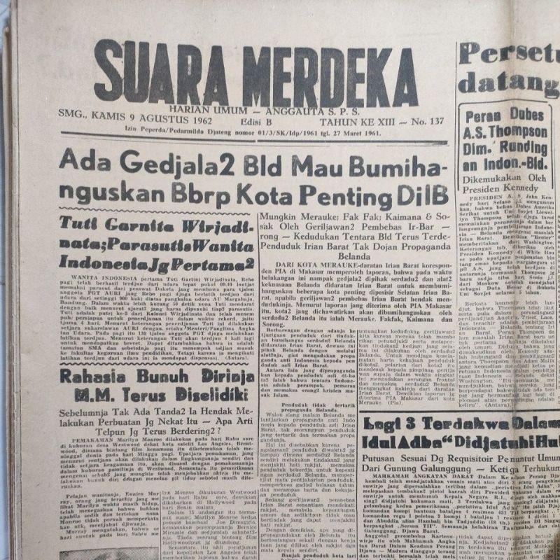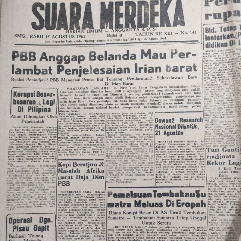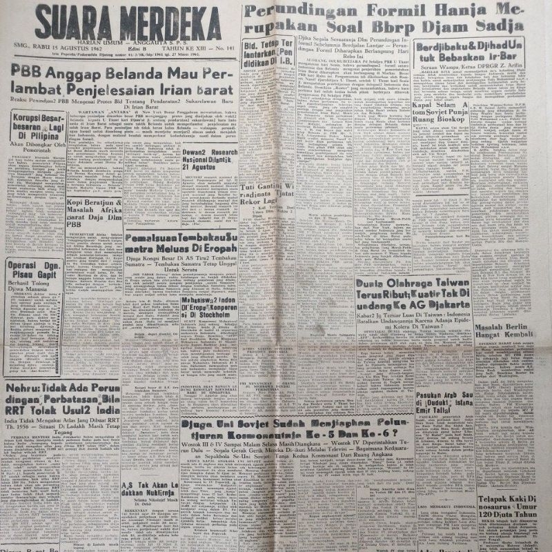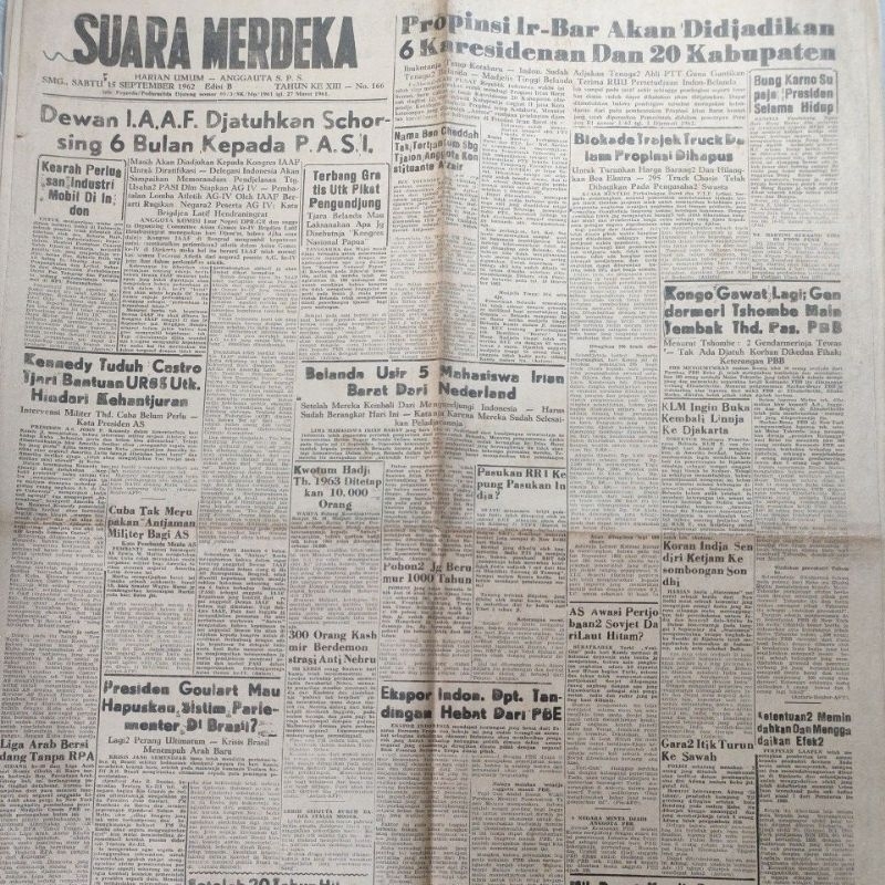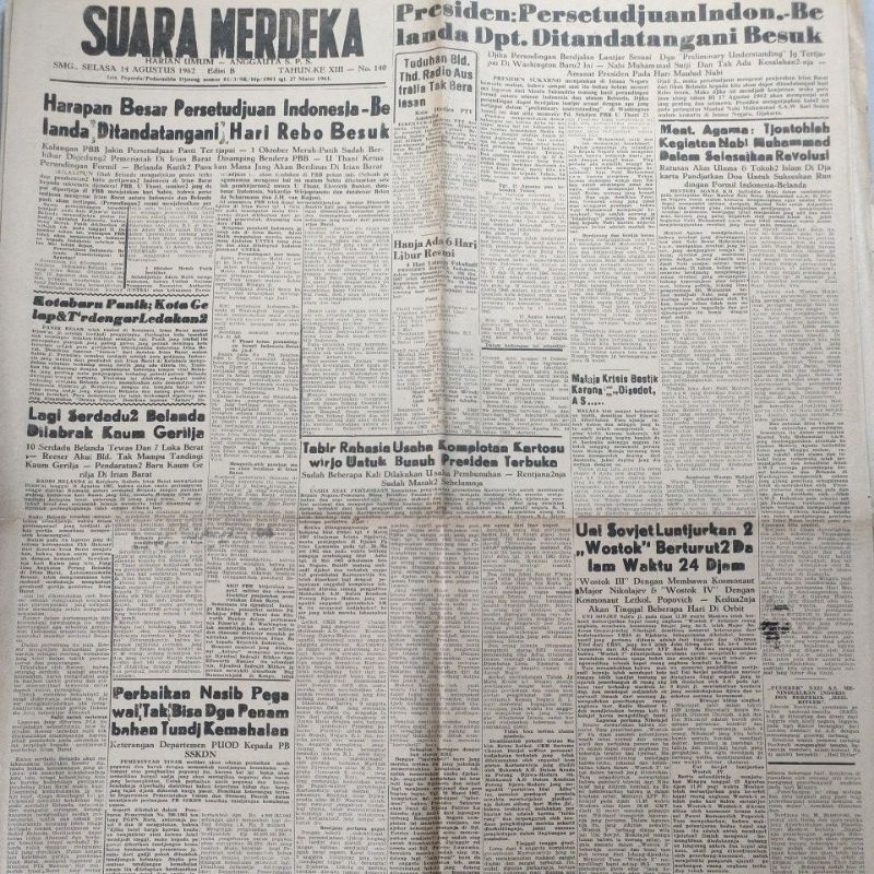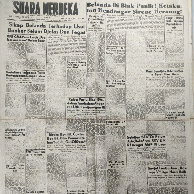 Koran Sejarah Indonesia Surat Kabar Suara Merdeka 1962 bisa pilih edisi koran tua headline IRIAN BARAT