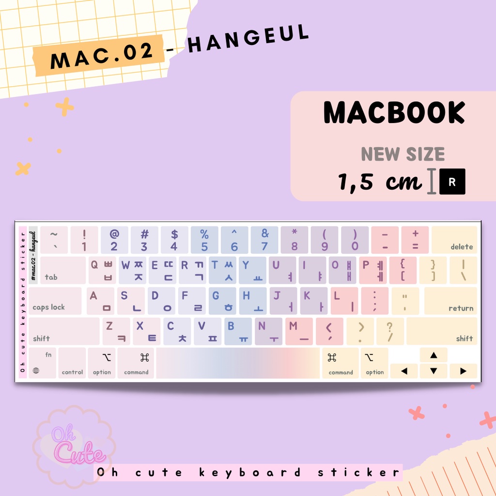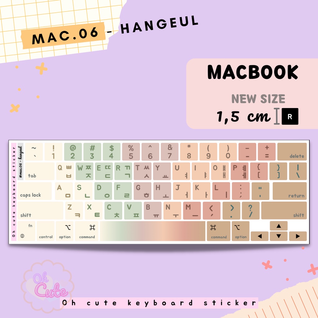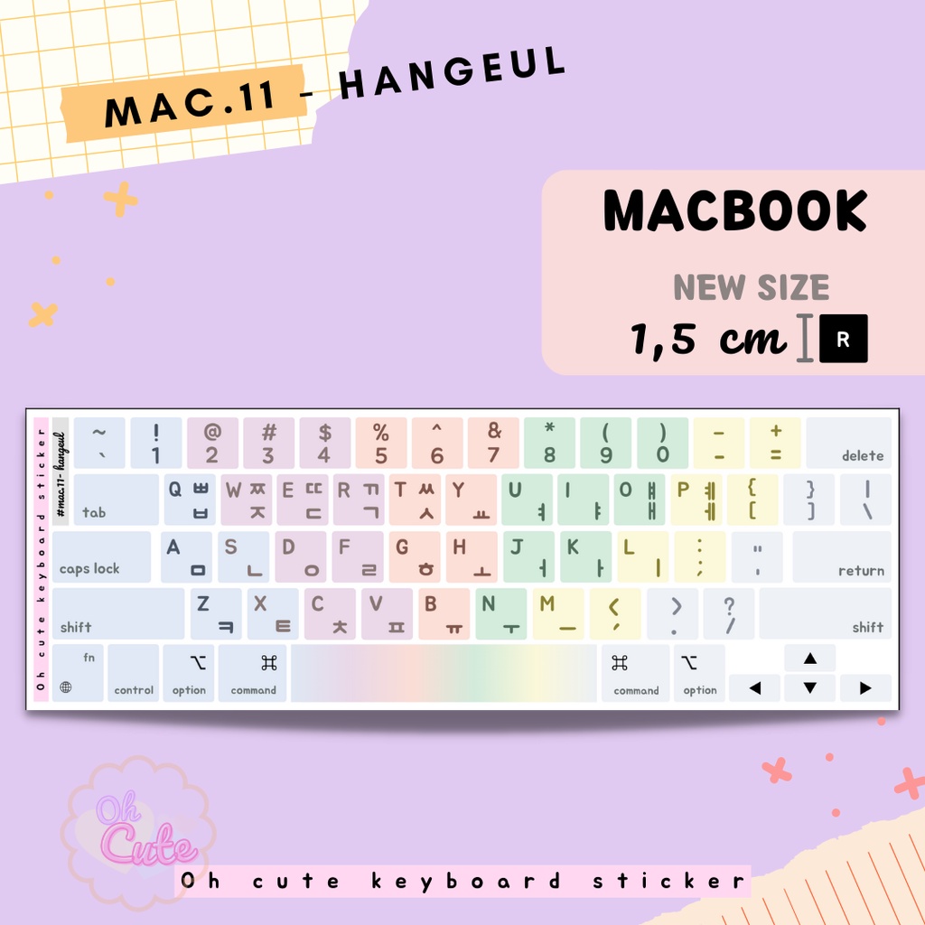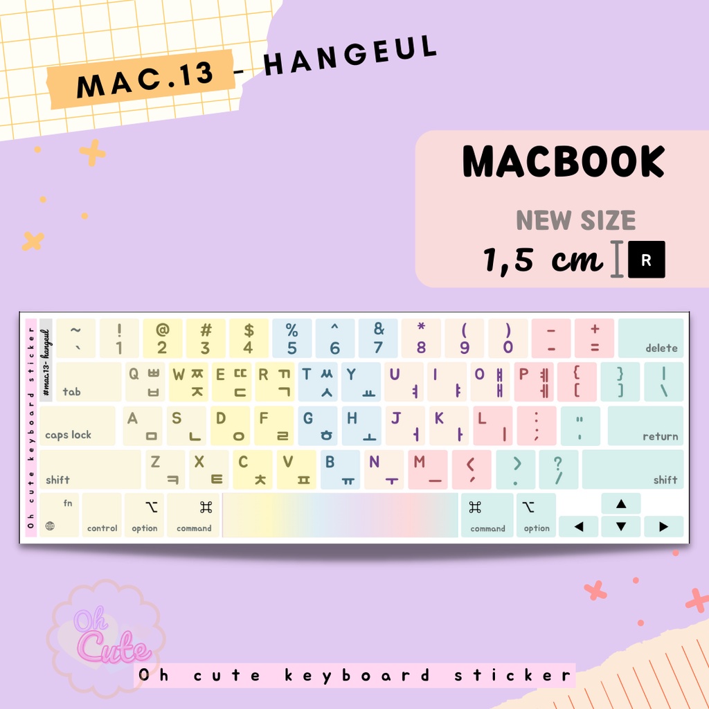Korean Hangul Keyboard Sticker for Macbook Aesthetic Palette Color Vinyl Laminated - Oh Cute Stiker