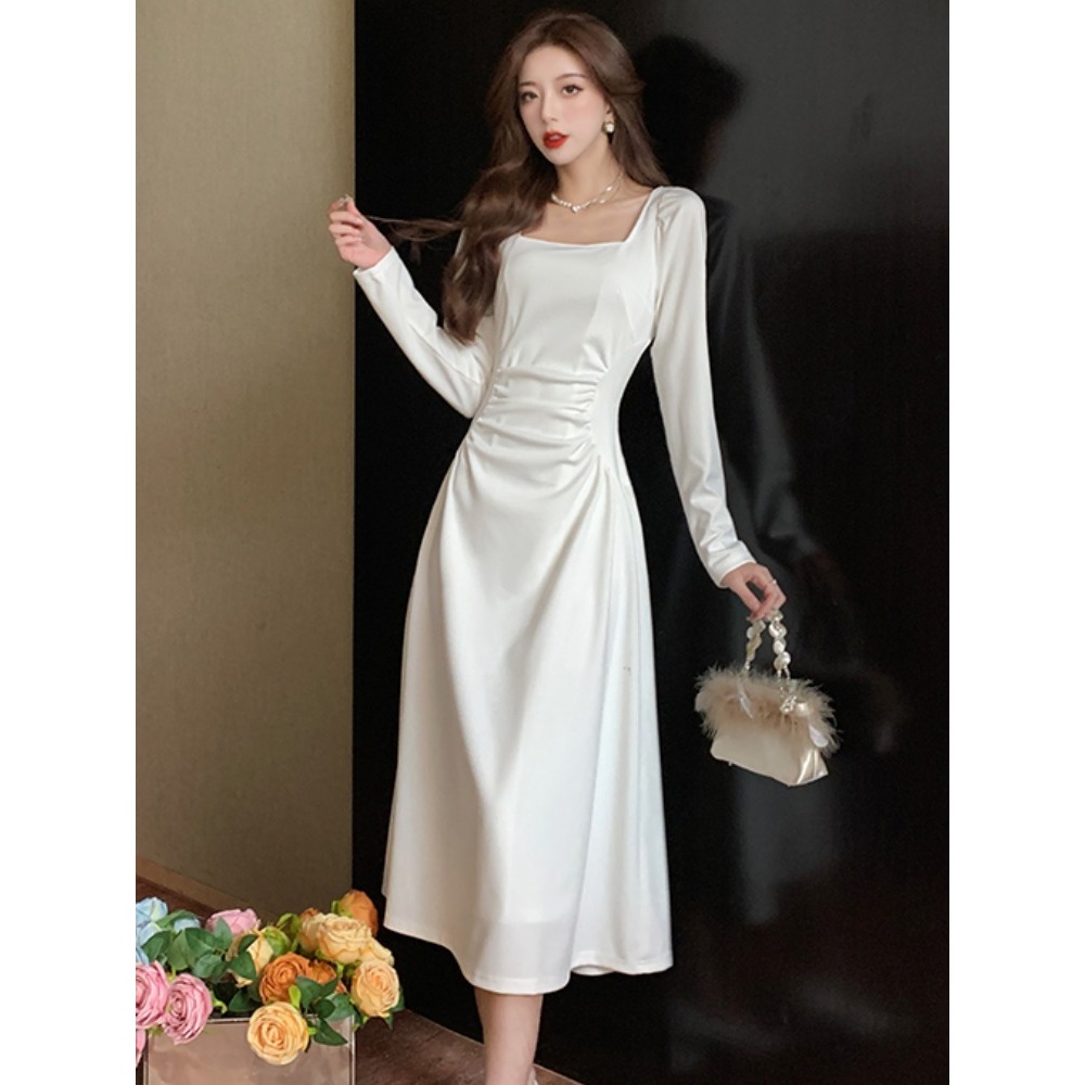Korean white dress for civil wedding long dress formal dress plus size dress below the knee dress 3XL