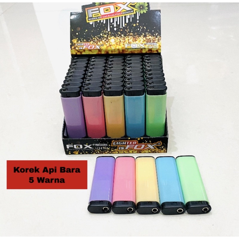 Korek Api Gas Bara 5 Warna Fox - Korek Gas 1 Box 50 Pcs
