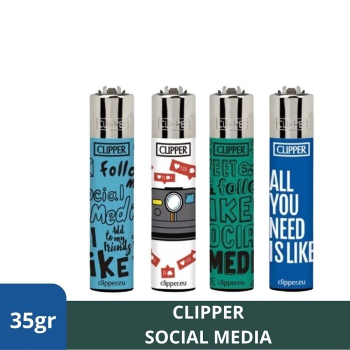 Korek Api Gas Clipper Social Media - Biru - Biru