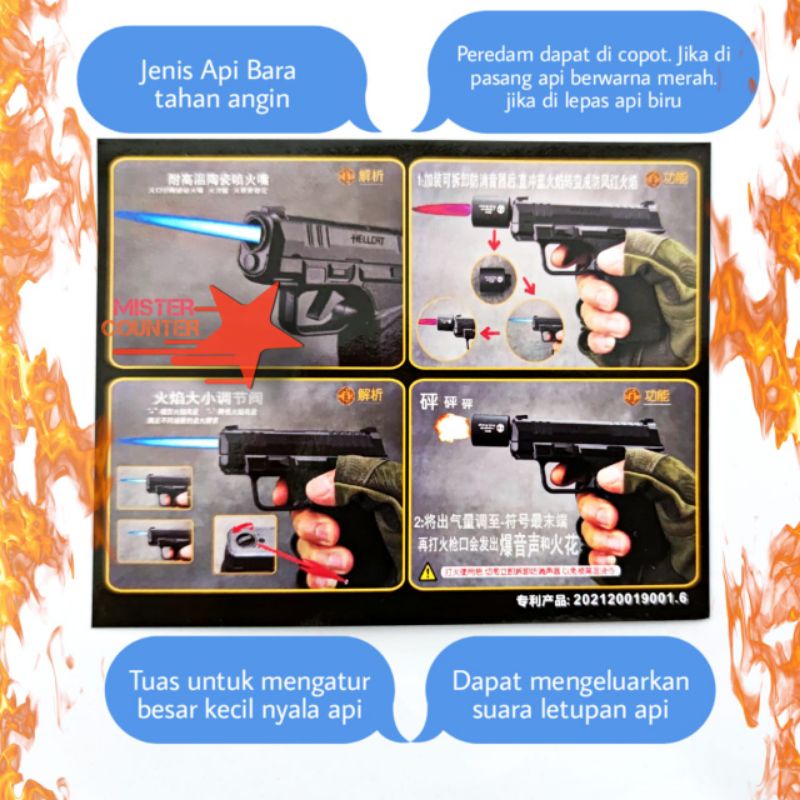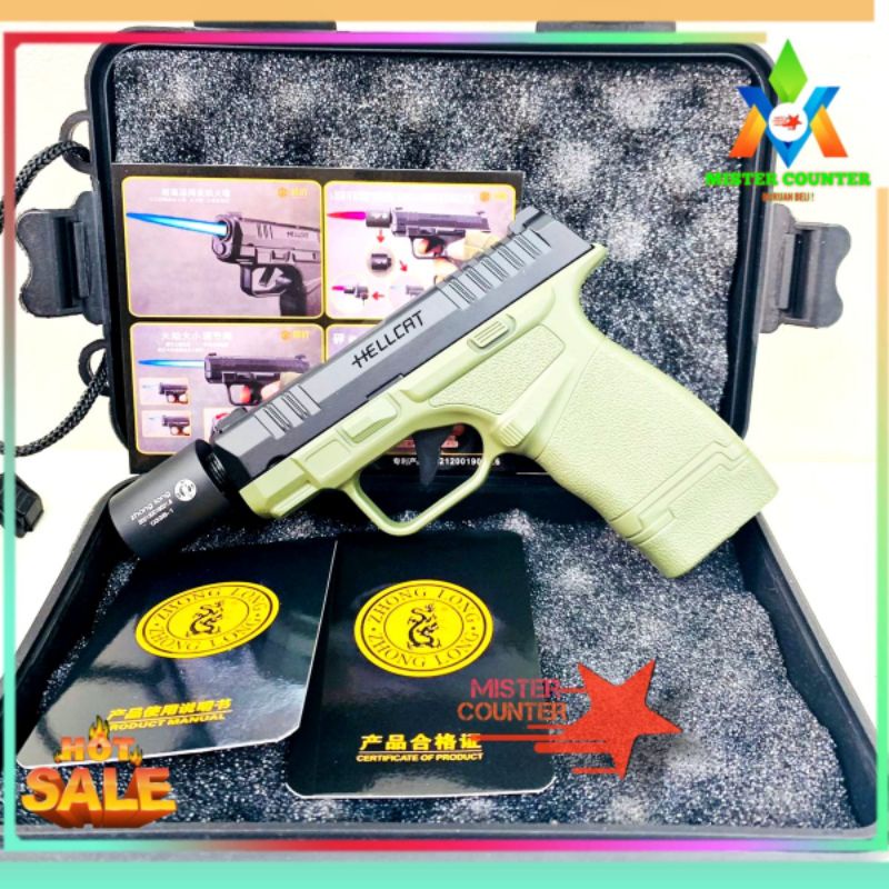 Korek Api Model Pistol Premium Hellcat - Korek Api unik Plus Hardcase - Korek Gas Zhong Long