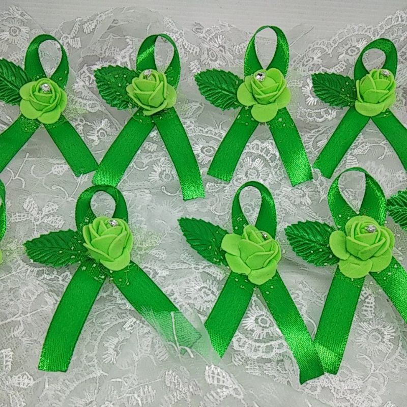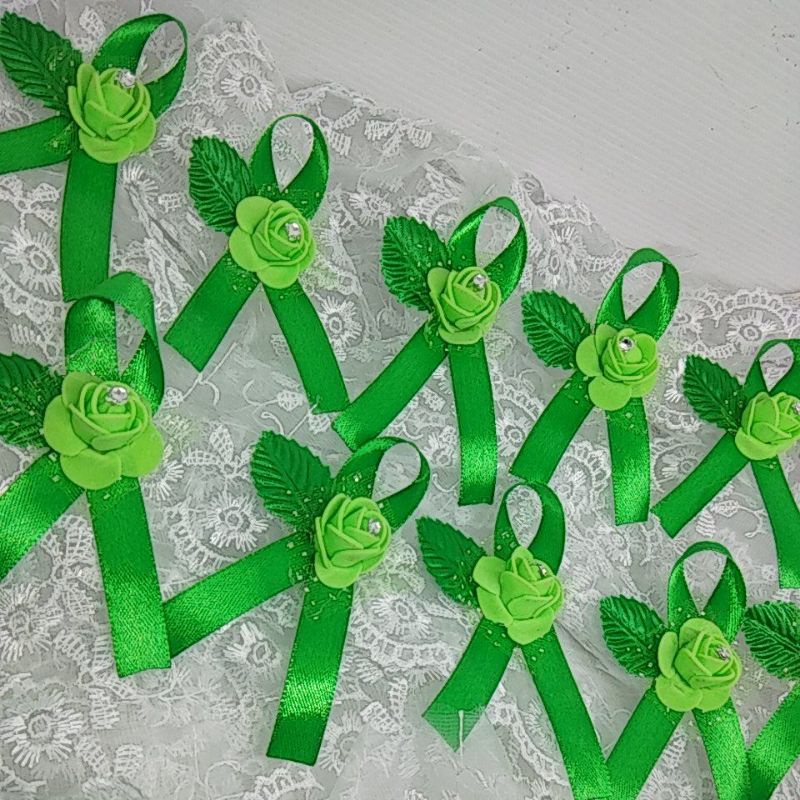 Korsase.bunga panitia hijau pink unggu bross bunga pita panitia