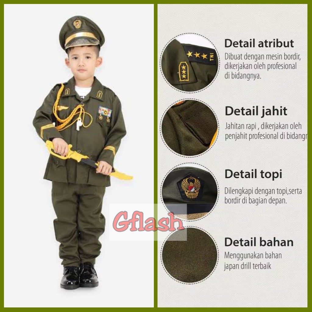 Kostum Anak Profesi TNI AD Jendral Baju Seragam Angkatan Darat Kijang Setelan