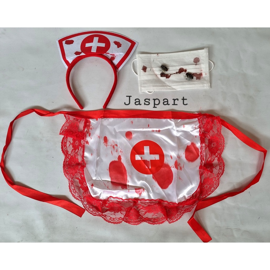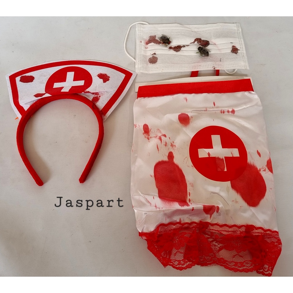 Kostum Bando Masker Suster Set Halloween Party Cosplay Hantu Suster