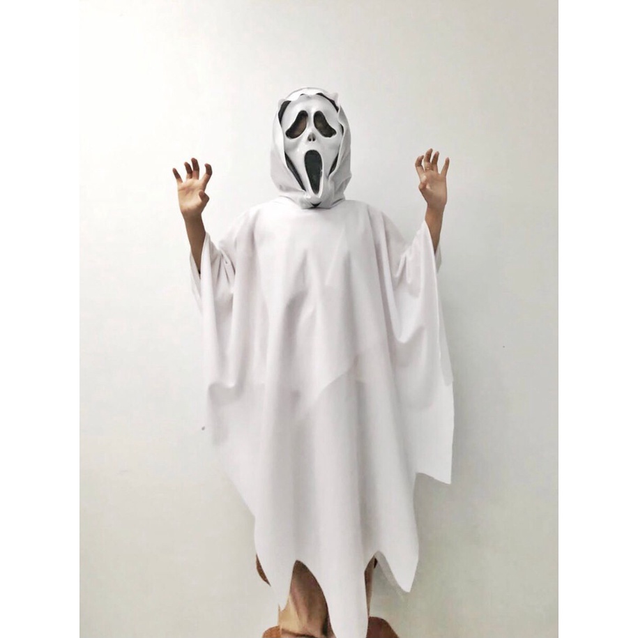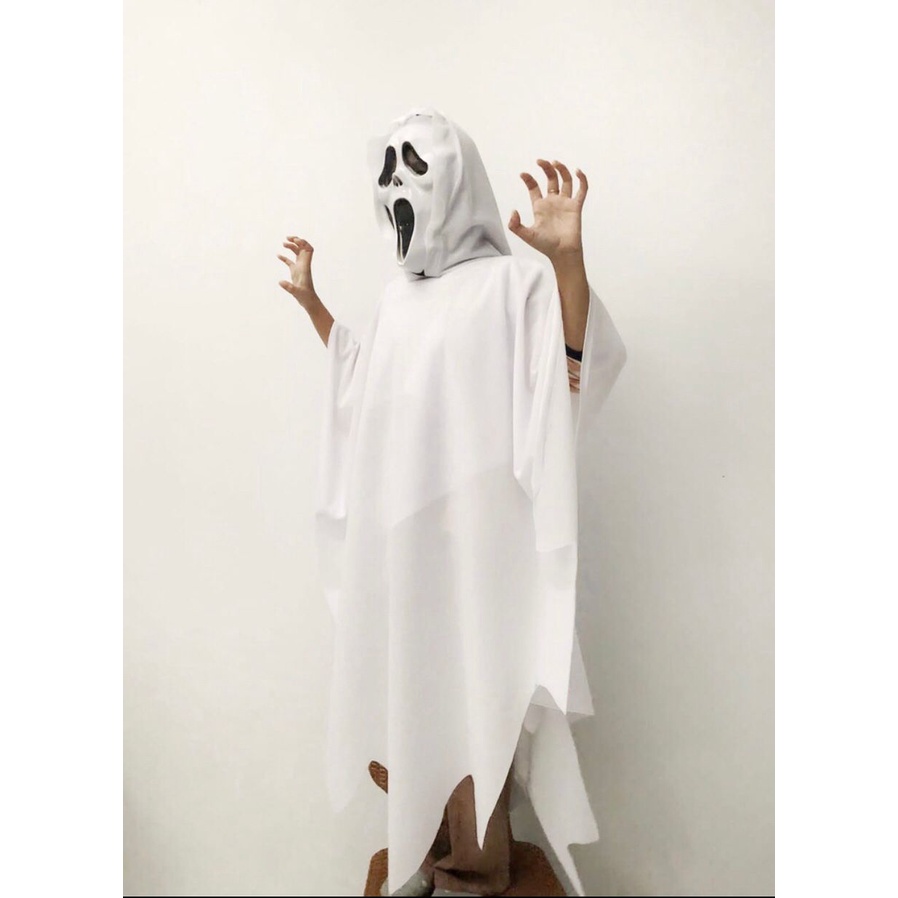 Cosplay Jubah Putih Polos Plus Hoodie Kostum Halloween Pria Dan Wanita
