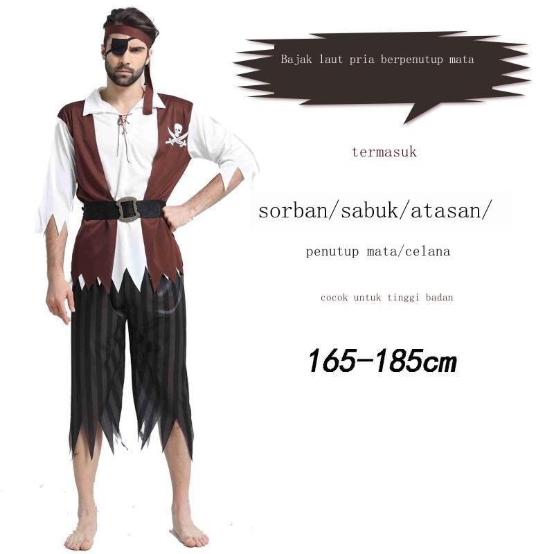 Kostum Halloween kostum bajak laut topeng Kapten Jack Sparrow pakaian pertunjukan bajak laut pria d