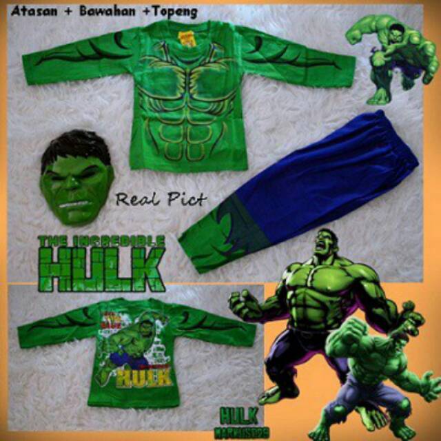 Kostum Hulk + Topeng / Baju Anak Superhero