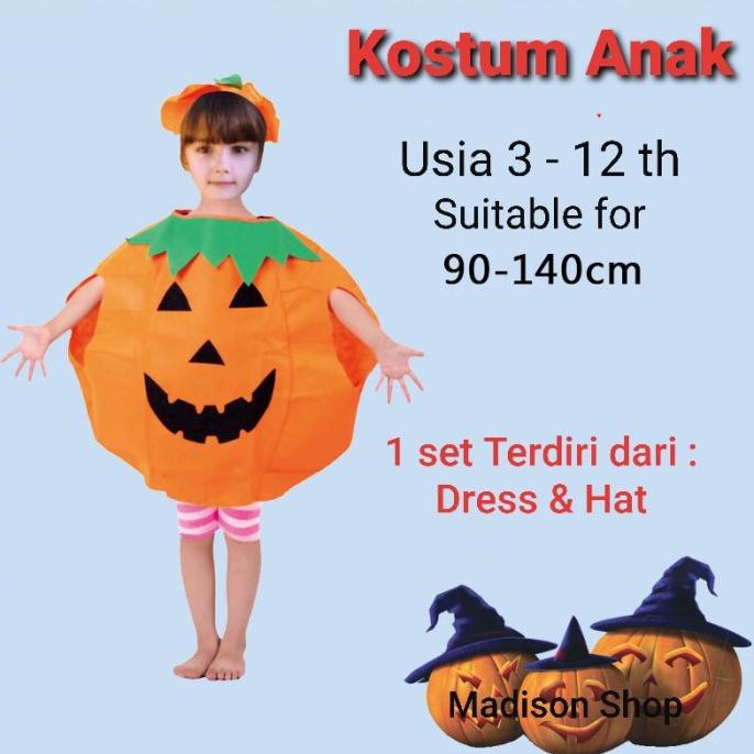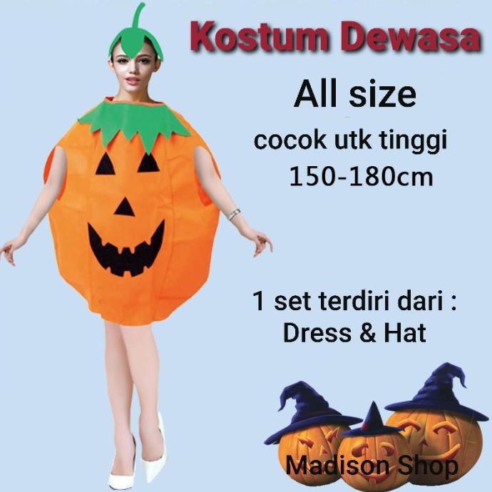 Kostum Labu Anak Dan Dewasa Costume Pumpkin Baju Pentas Halloween Ready Stock