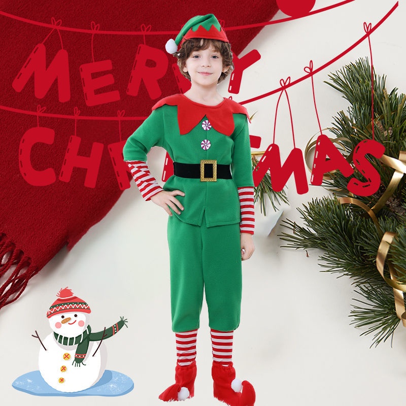 Kostum Natal Anak-anak Natal Elf Kostum Cosplay Orang Tua-Anak Kostum Festival Dewasa Pria dan Wanita Hijau Kostum Natal Kostum natal anak-anak pakaian anak laki-laki dan perempuan dewasa berdandan kostum W1/W2