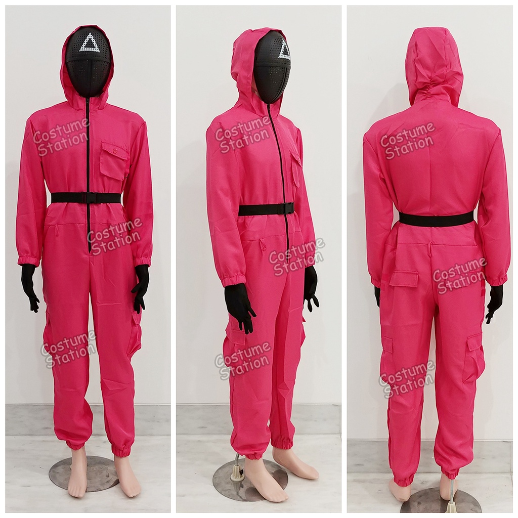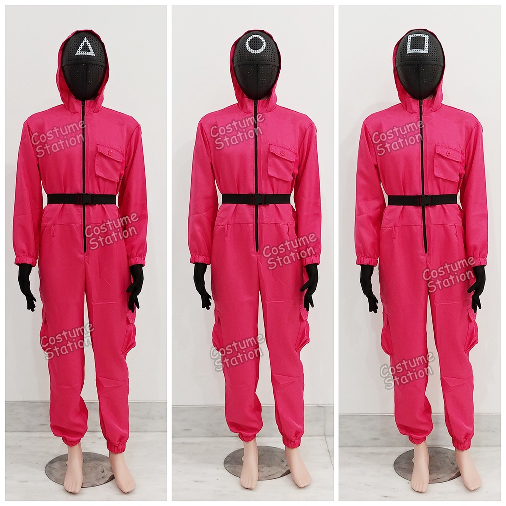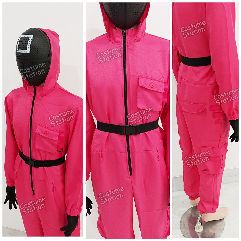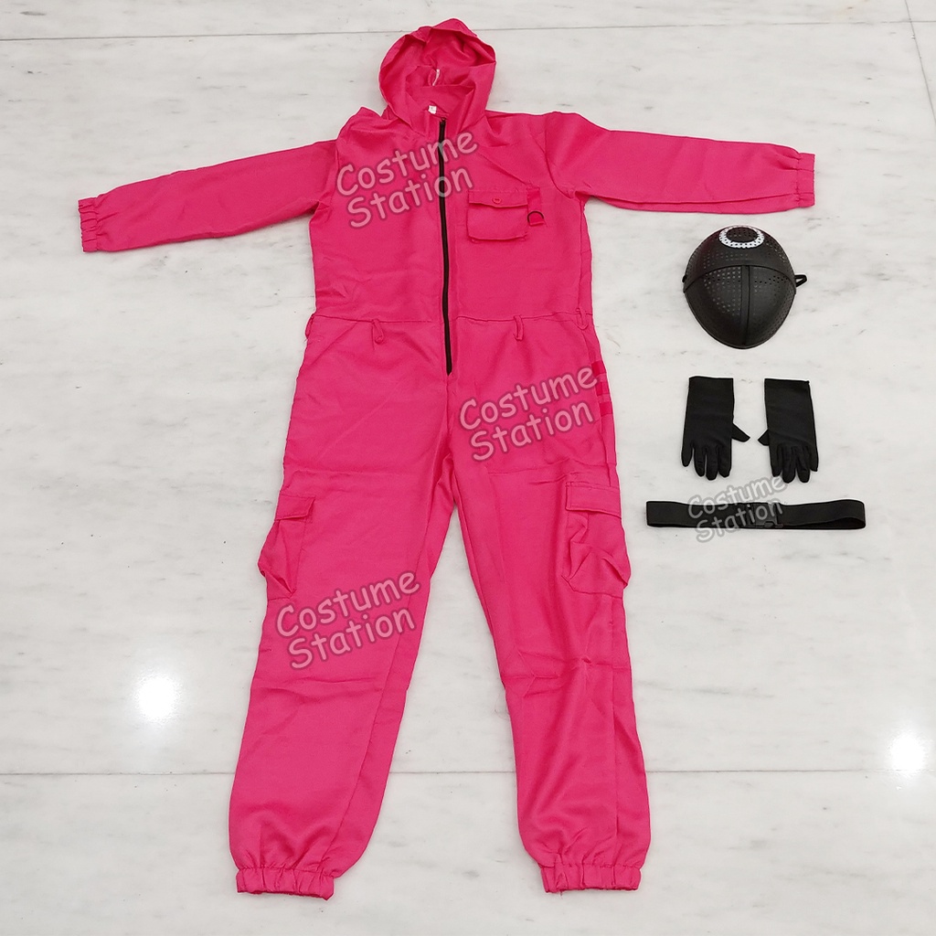 Kostum Squid Game Pink Guards / Costume Pink Masked Soldiers dewasa